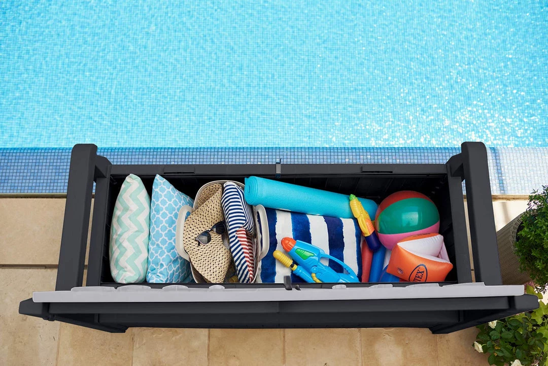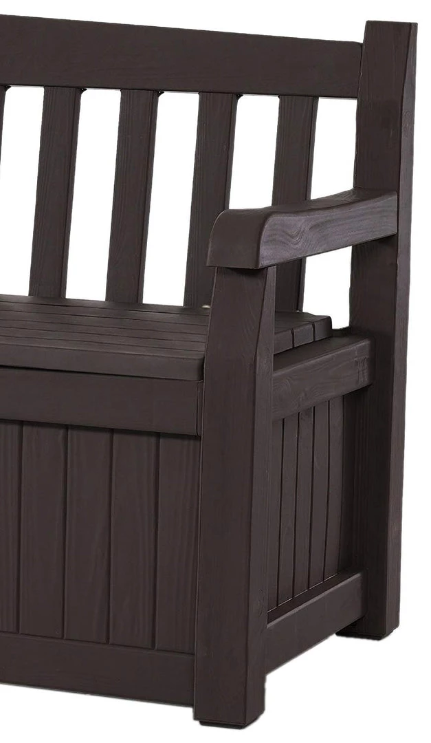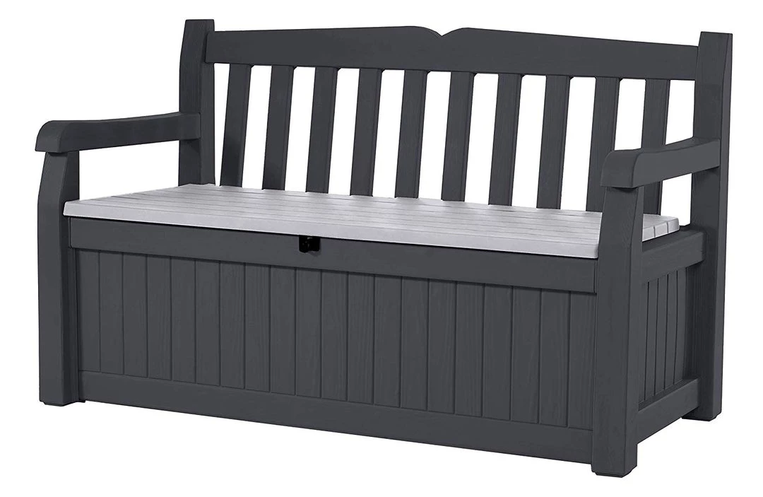 - 70-Gallon Eden Storage Bench is both a spacious outdoor storage solution and a practical, beautiful garden bench