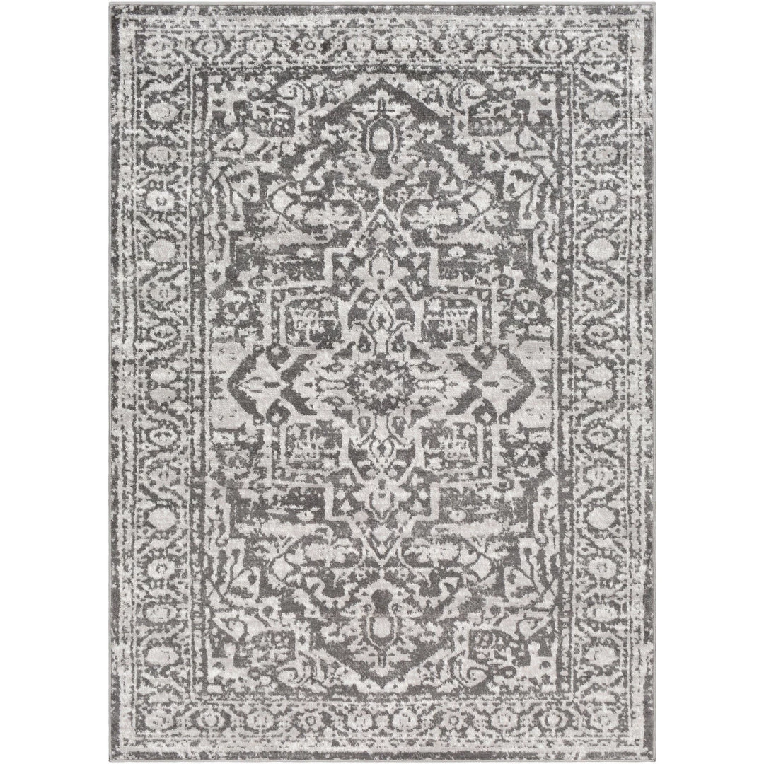 This lovely collection features a Persian inspired medallion pattern in tones of gray. Gorgeous and soft, this rug features a comfortable pile with minimal shedding. Great for high-traffic areas. Machine made in Turkey with 100% polypropylene. Spot or professionally clean only. Rug pad recommended.
