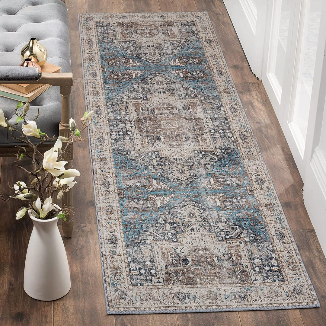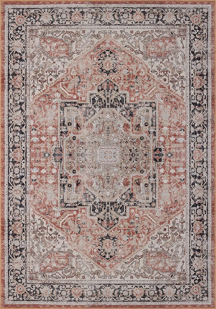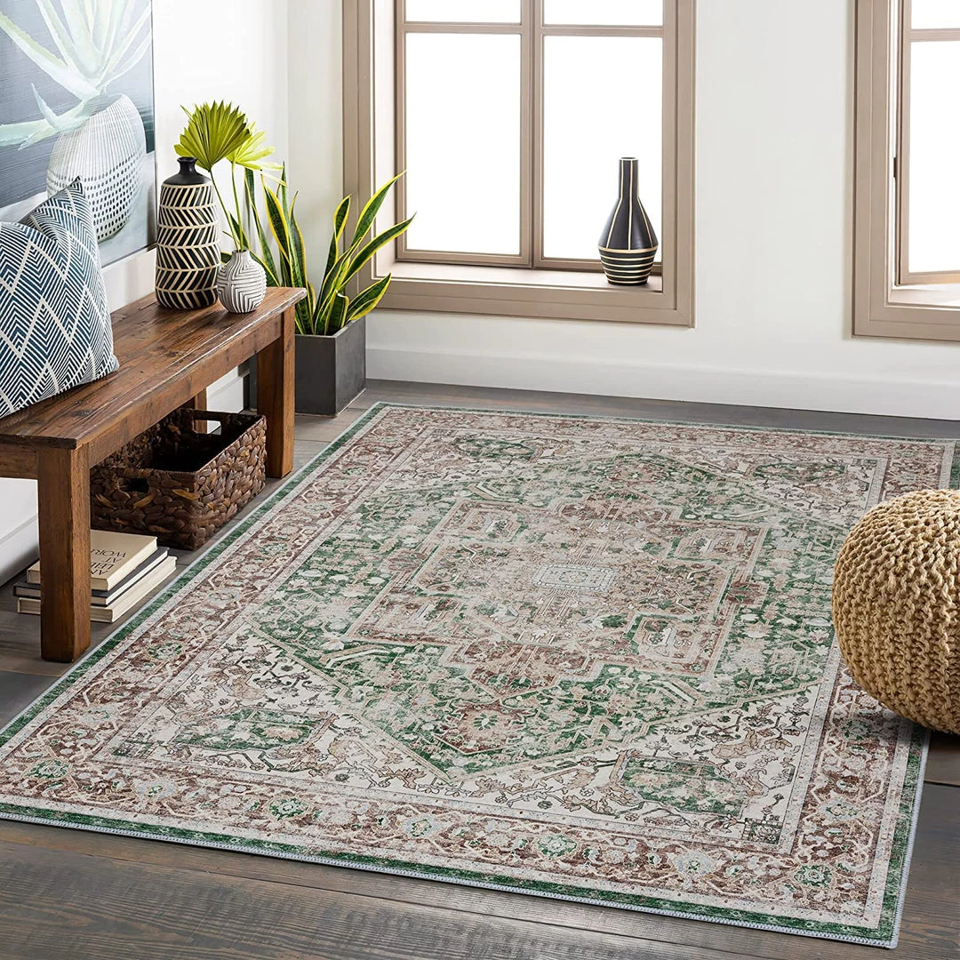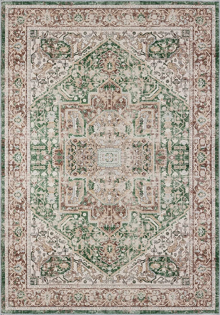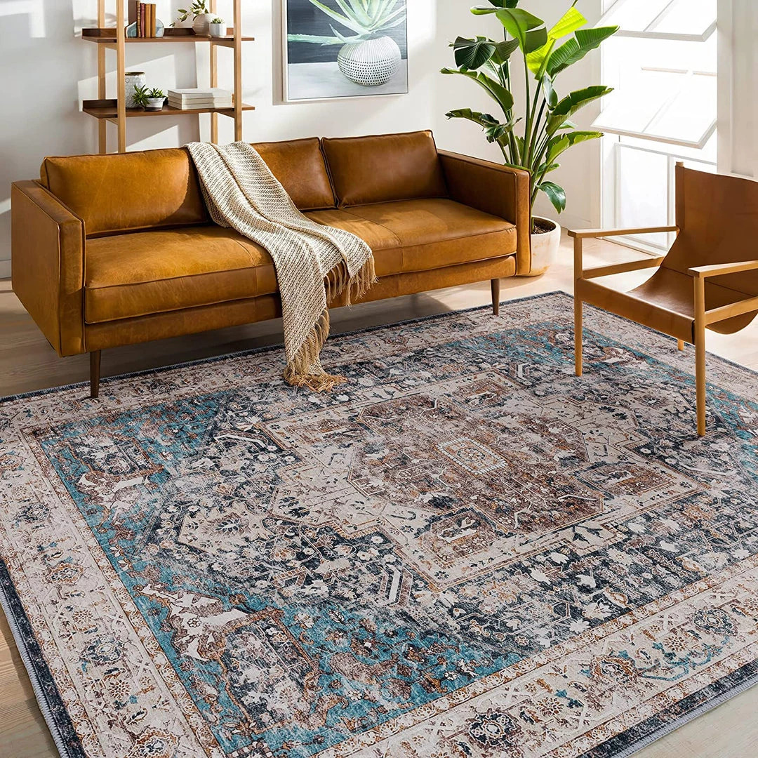 Adiva Rugs Machine Washable Area Rugs, Persian Vintage Medallion Boho Rug For Living Room Rugs – Stain Resistant & Non-Slip All Area Rugs And Runners