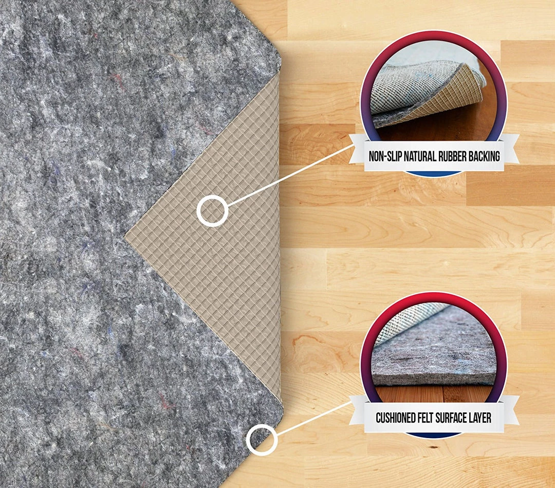 - Home Dual Surface Rug Pad is a 100% recycled felt non-slip rug pad with latex backing providing area rug protection and added cushioning