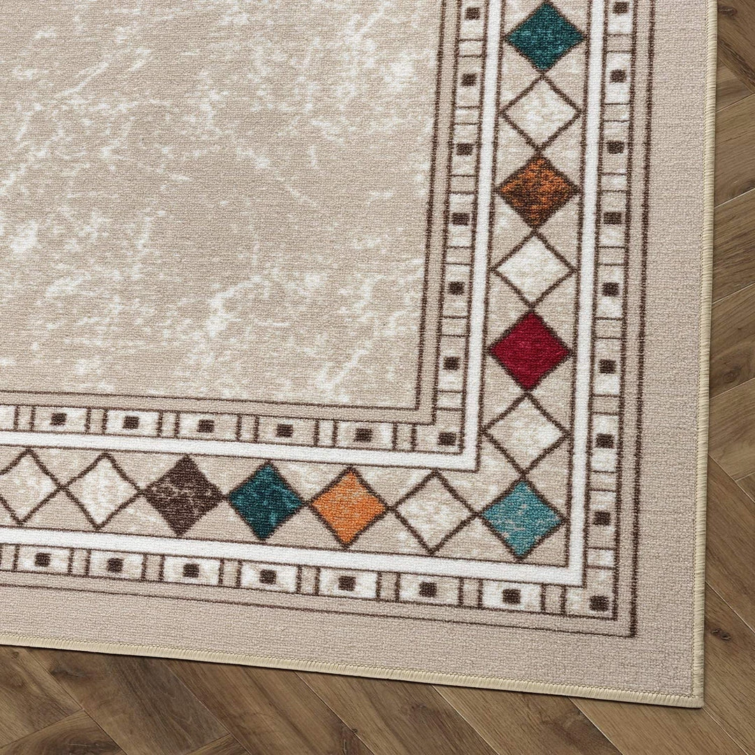 - DURABLE COMFORT: Machine-made from stain-resistant and stylish 100% Polypropylene, this durable area rug is designed for comfort and style. With a low pile height, this floor rug offers comfort without being too bulky for your pets, guests and children.​