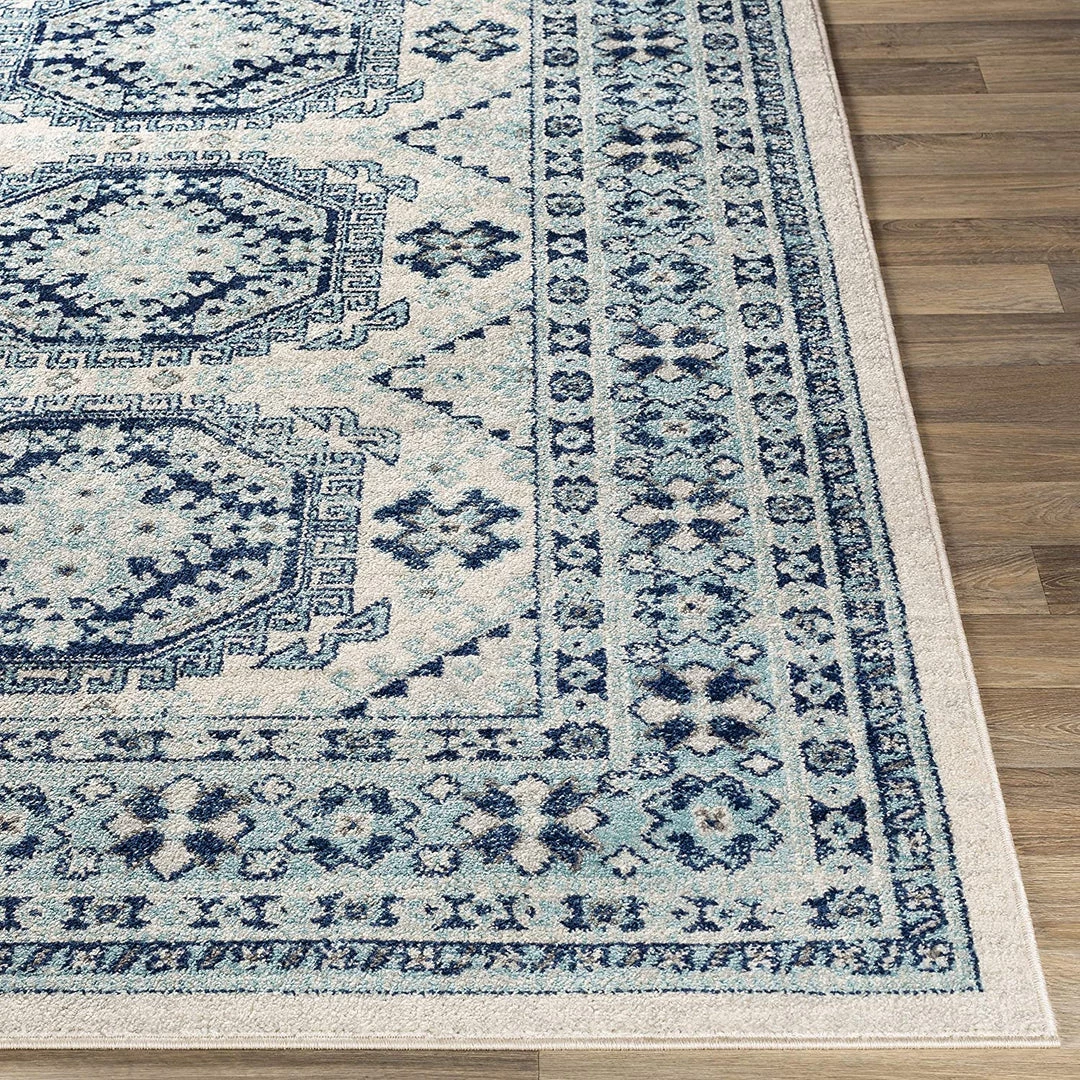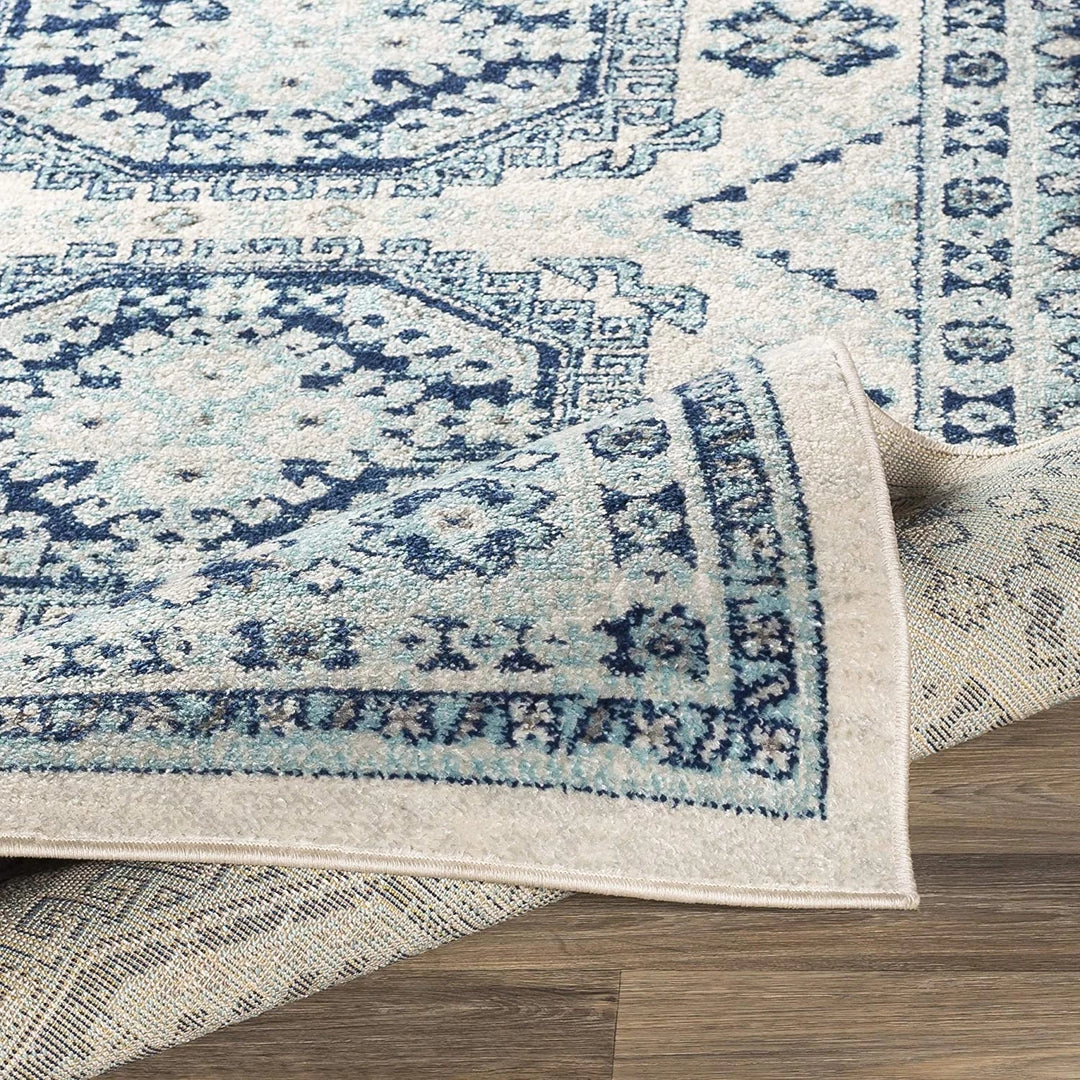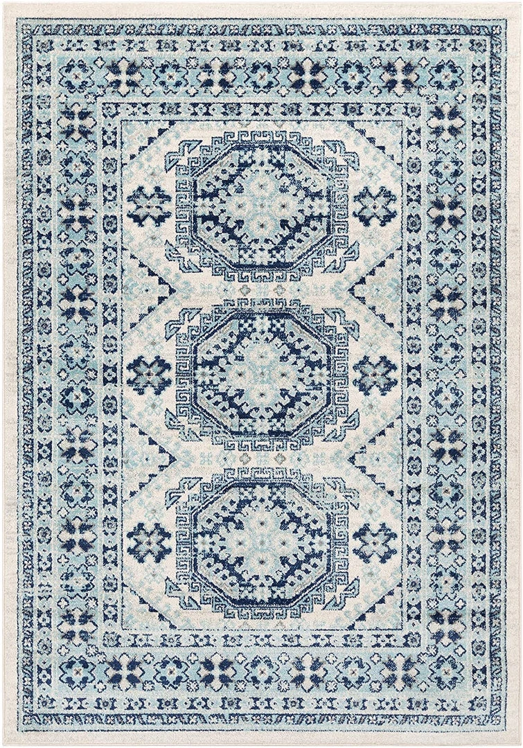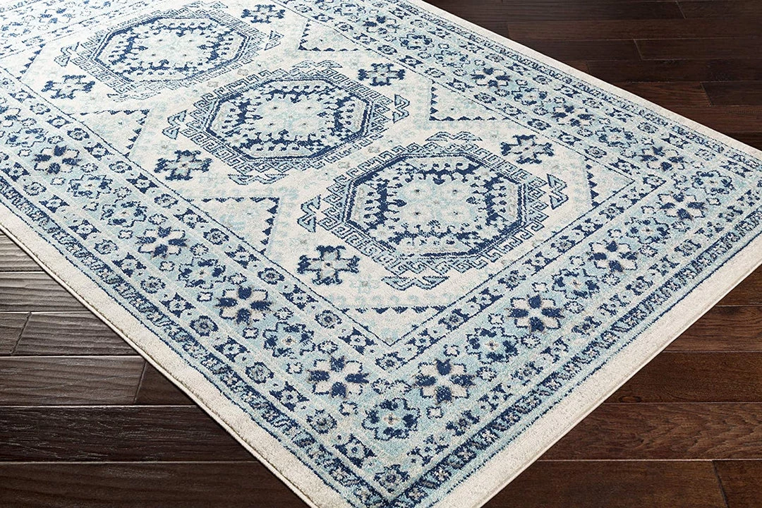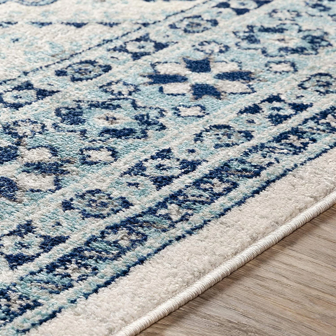 WRG All Area Rugs And Runners Blue Gray Ivory Floral Area Rug Non Slip/ No Skid – Low Pile