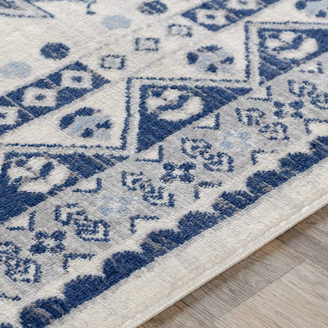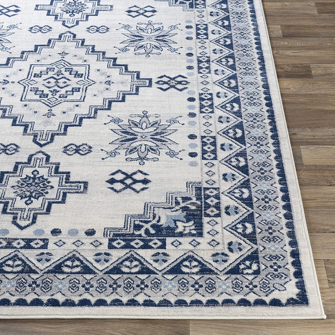 WRG All Area Rugs And Runners Blue Gray Ivory Floral Area Rug Non Slip/ No Skid – Low Pile