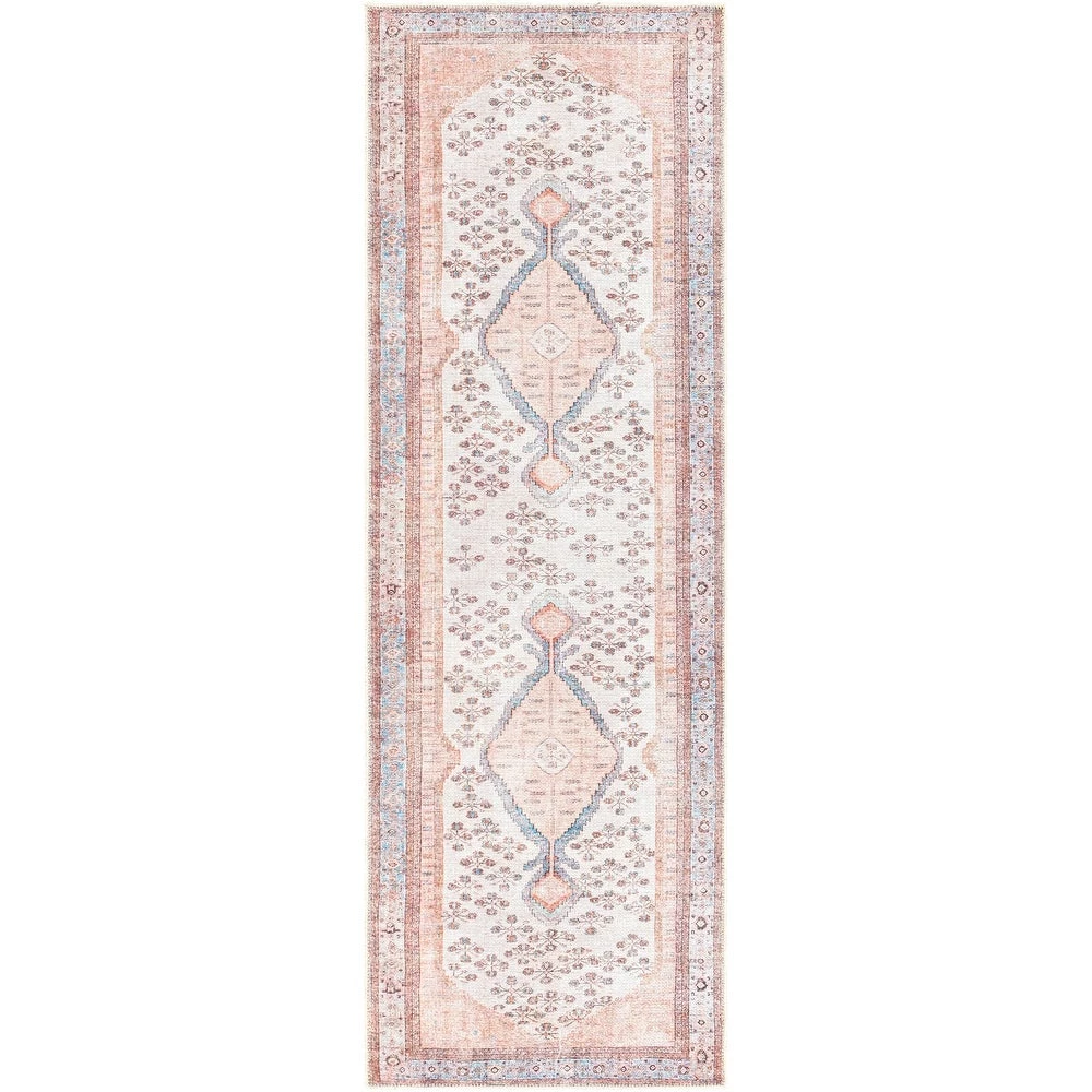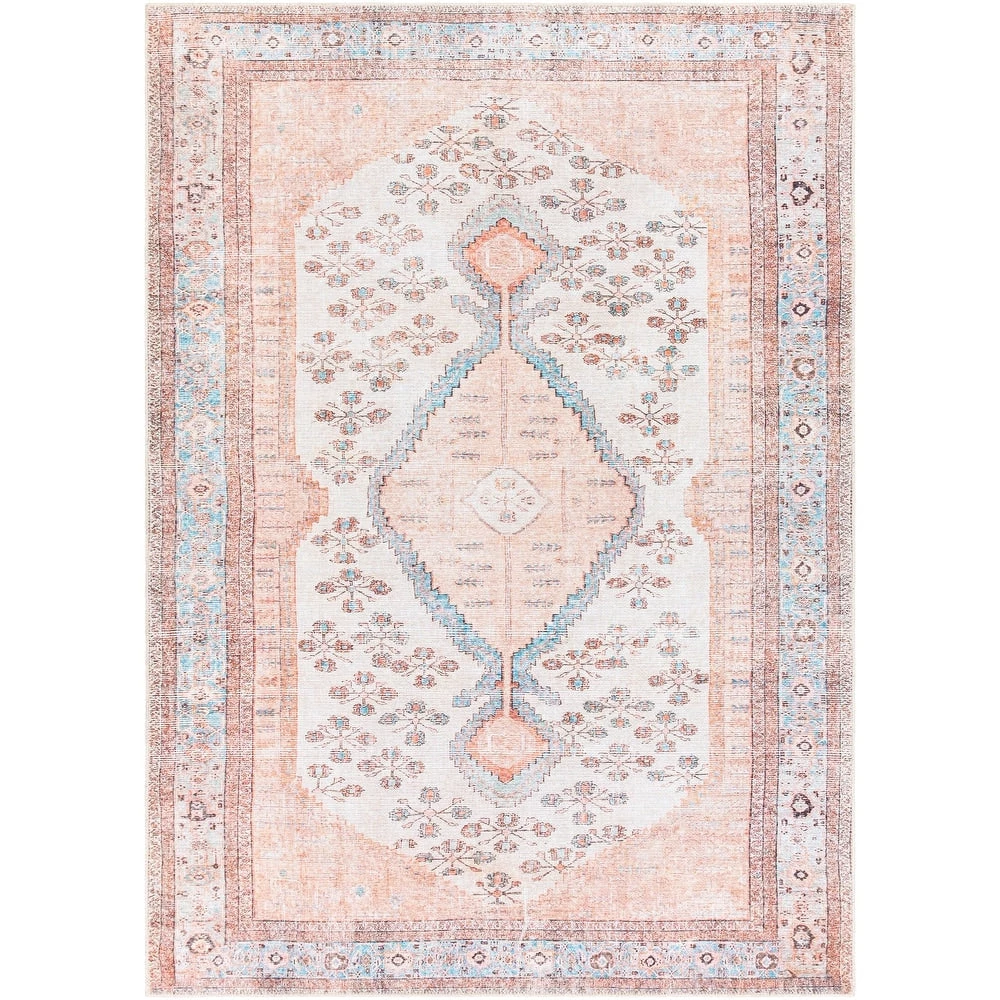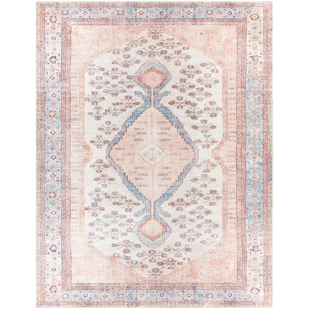 With a bold medallion pattern in beautifully vintage tones, the collection will be a great addition to your home! With a low profile reminiscent of an antique rug, a slightly distressed screen printed pattern, and a soft touch, this piece will add a nice pop of style and comfort. Machine woven in Turkey with 100% chenille-polyester, this synthetic rug is great for high-traffic areas. Machine washable. Rug pad recommended.