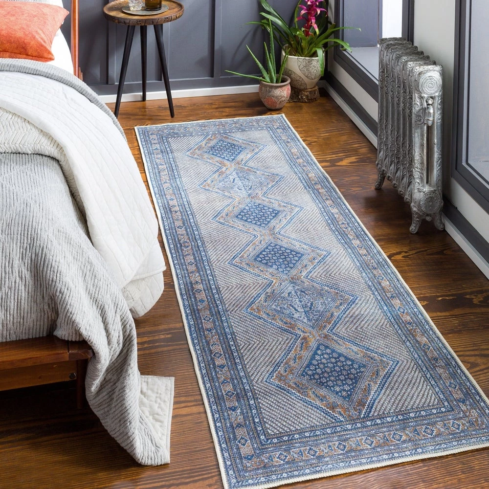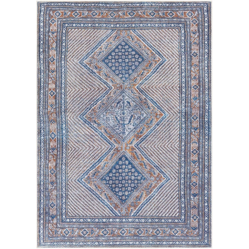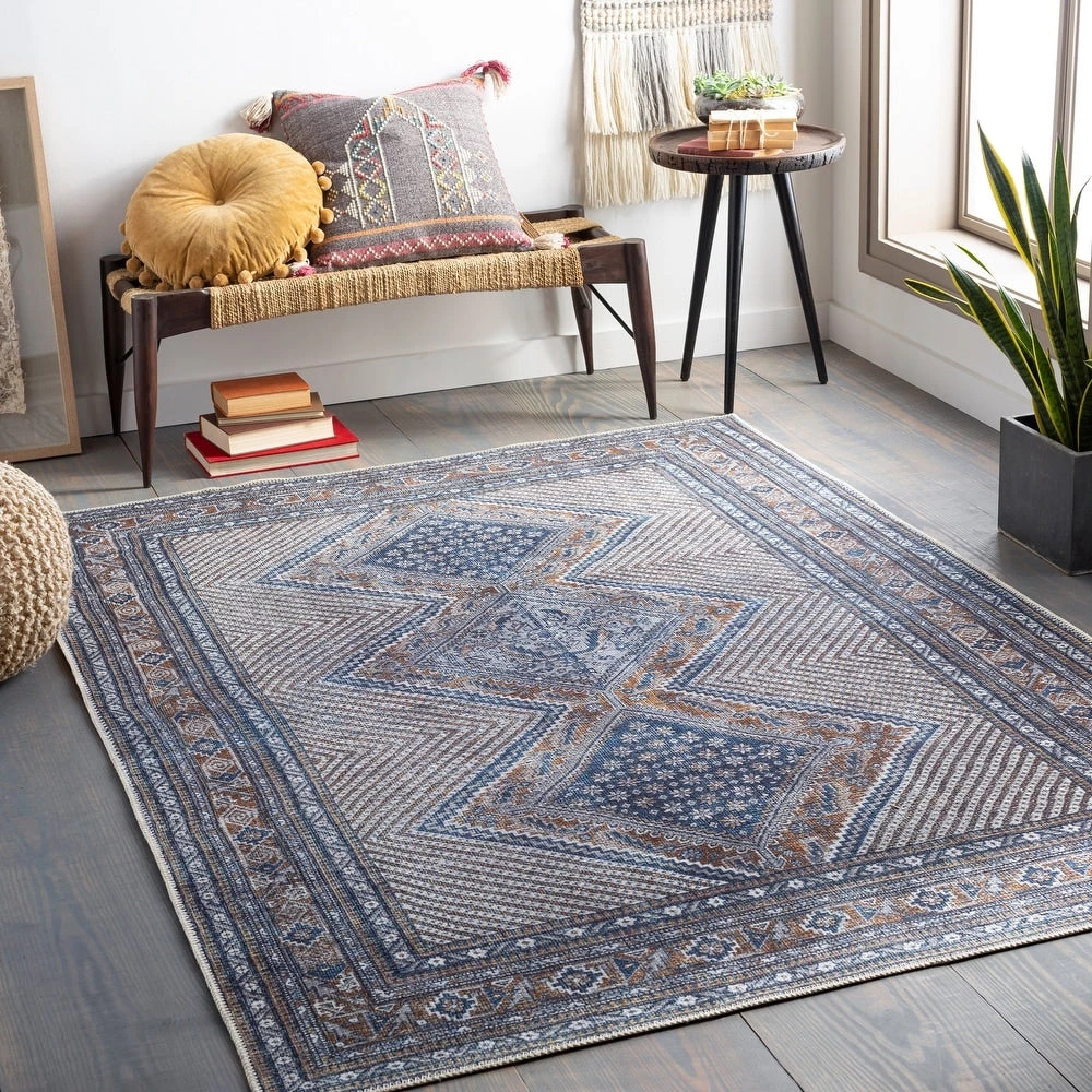 With a bold medallion pattern in beautifully tones, the collection will be a great addition to your home! With a low profile reminiscent of an antique rug, a slightly distressed screen printed pattern, and a soft touch, this piece will add a nice pop of style and comfort. Machine woven in Turkey with 100% chenille-polyester, this synthetic rug is great for high-traffic areas. Machine washable. Rug pad recommended.