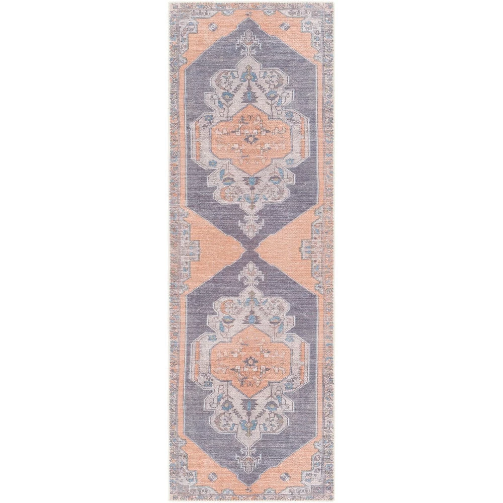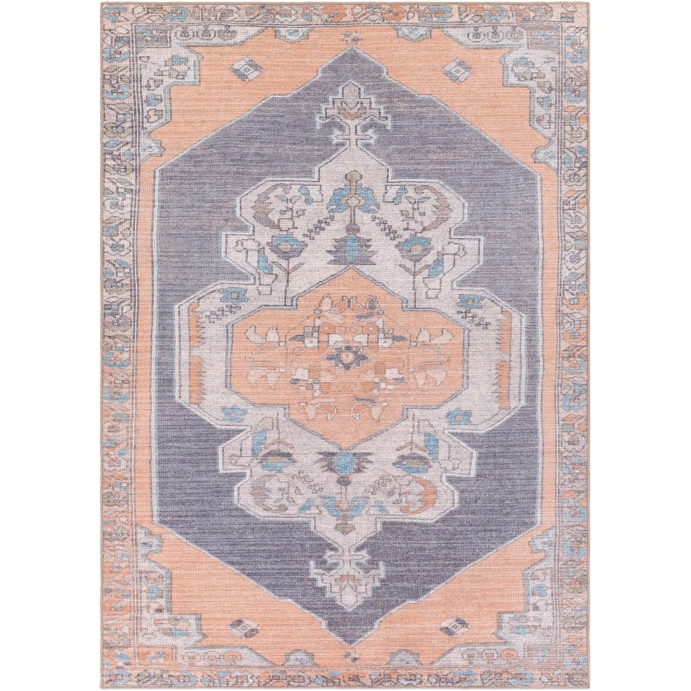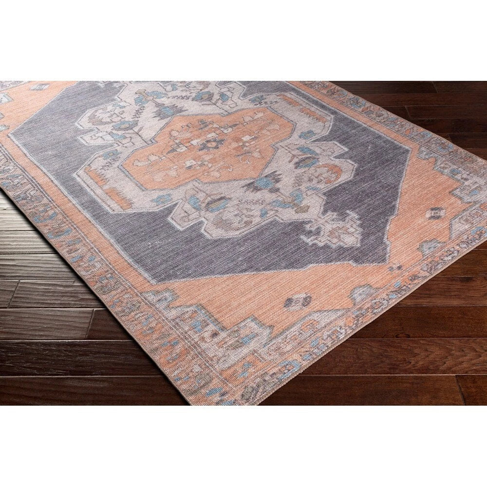 With a bold floral medallion pattern in beautifully vintage tones, the collection will be a great addition to your home! With a low profile reminiscent of an antique rug, a slightly distressed screen printed pattern, and a soft touch, this piece will add a nice pop of style and comfort. Machine woven in Turkey with 100% chenille-polyester, this synthetic rug is great for high-traffic areas. Machine washable. Rug pad recommended.