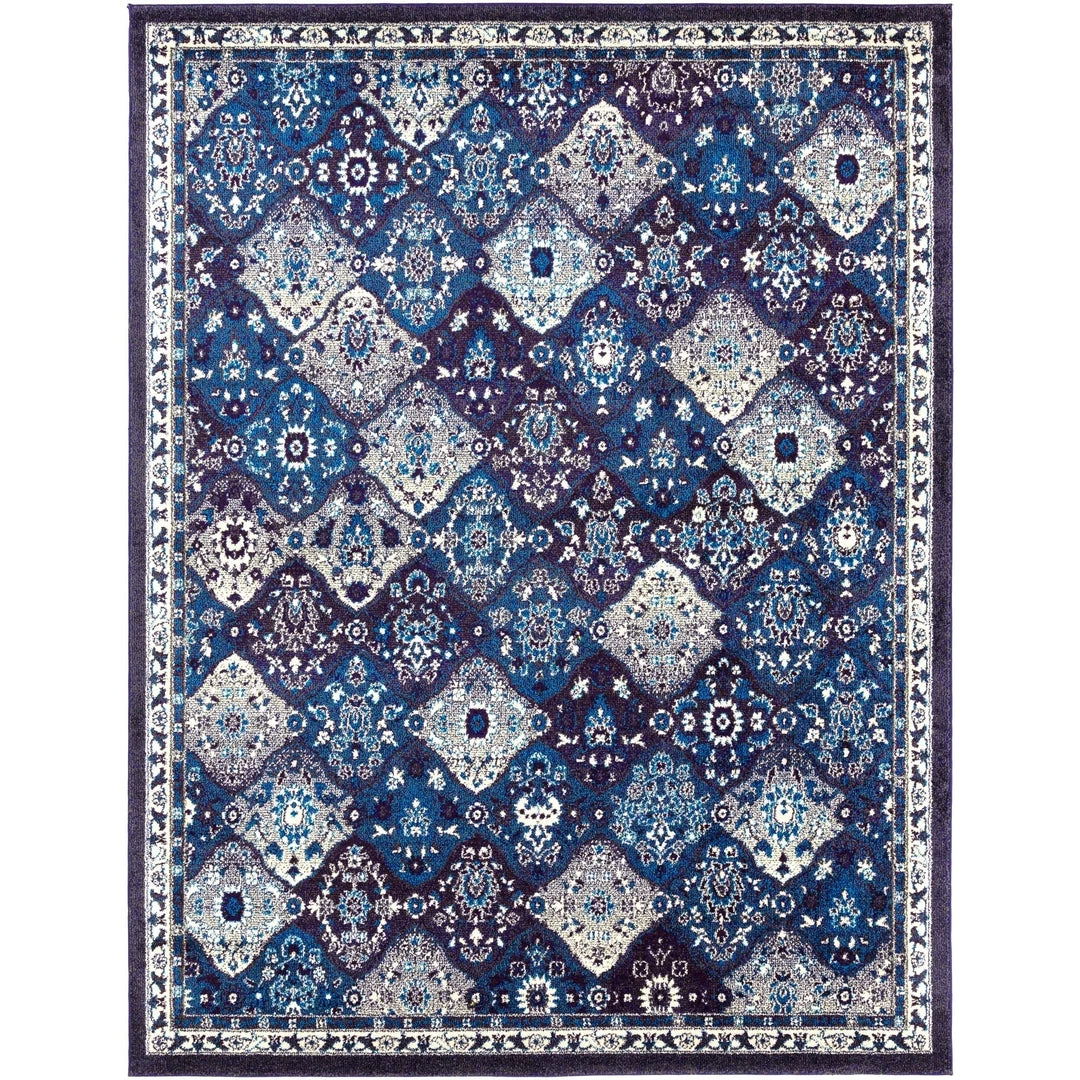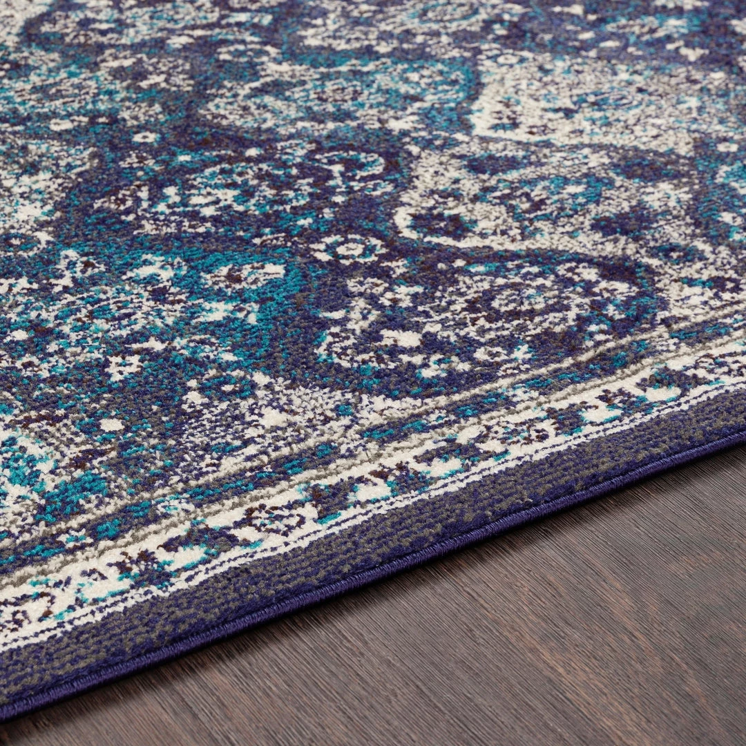 This elegant collection features a distressed patchwork medallion pattern in vibrant shades of navy, teal, charcoal, dark brown, beige, and white. Gorgeous and soft, this rug features a comfortable pile with minimal shedding. Great for high-traffic areas. Provides a burst of color at an excellent price! Machine made in Turkey with 100% polypropylene. Spot or professionally clean only. Rug pad recommended.