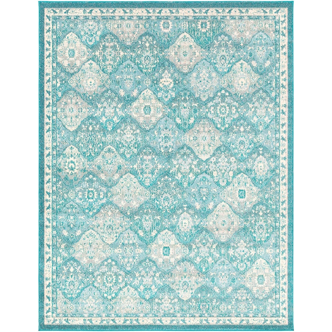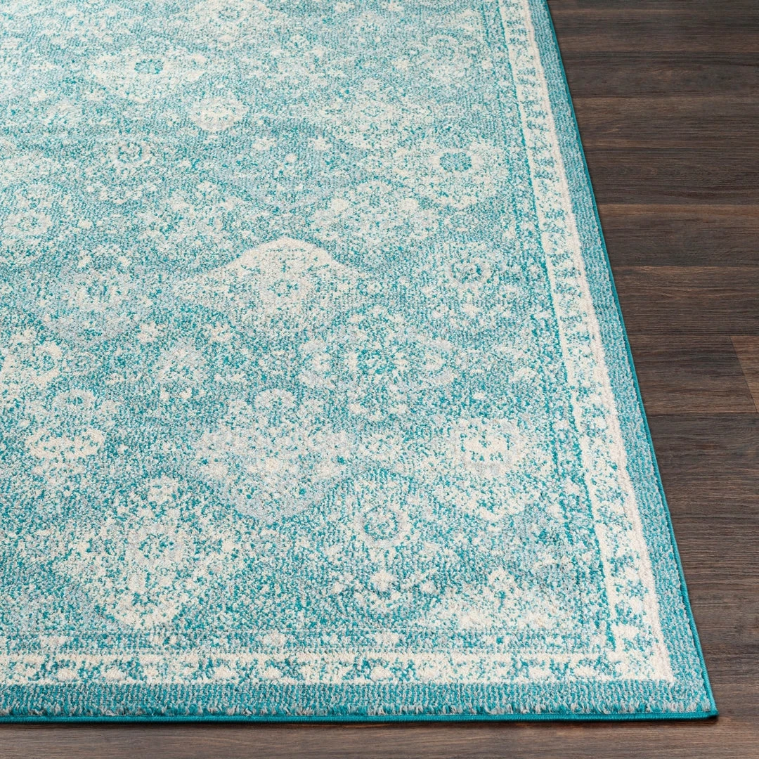 This elegant collection features a distressed patchwork medallion pattern in soft tones of teal, pale blue, light gray, beige, and white. Gorgeous and soft, this rug features a comfortable pile with minimal shedding. Great for high-traffic areas. Provides a burst of color at an excellent price! Machine made in Turkey with 100% polypropylene. Spot or professionally clean only. Rug pad recommended.