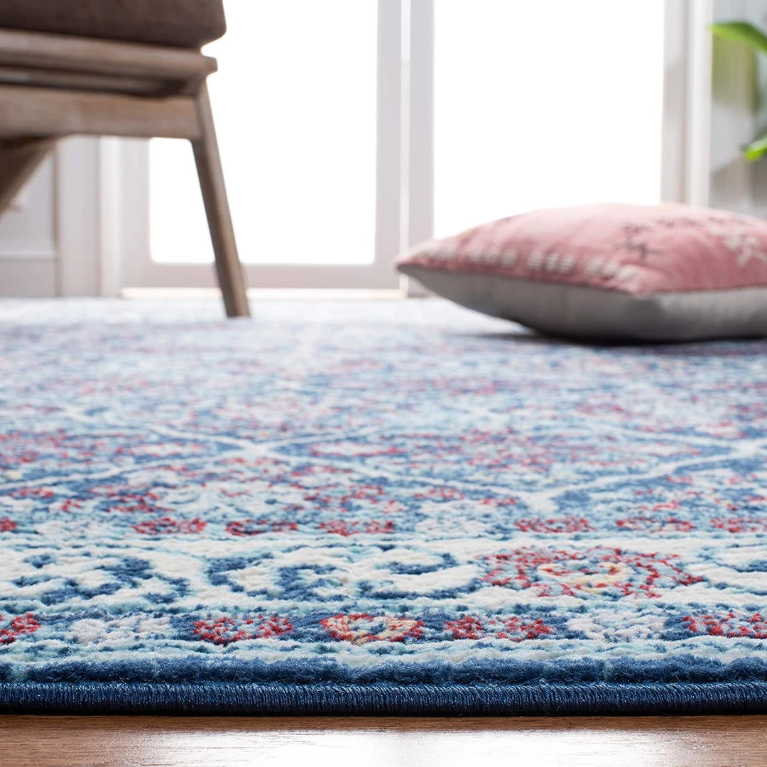 BNT870N All Area Rugs And Runners Damask Trellis Soft Area Rug, Navy / Red