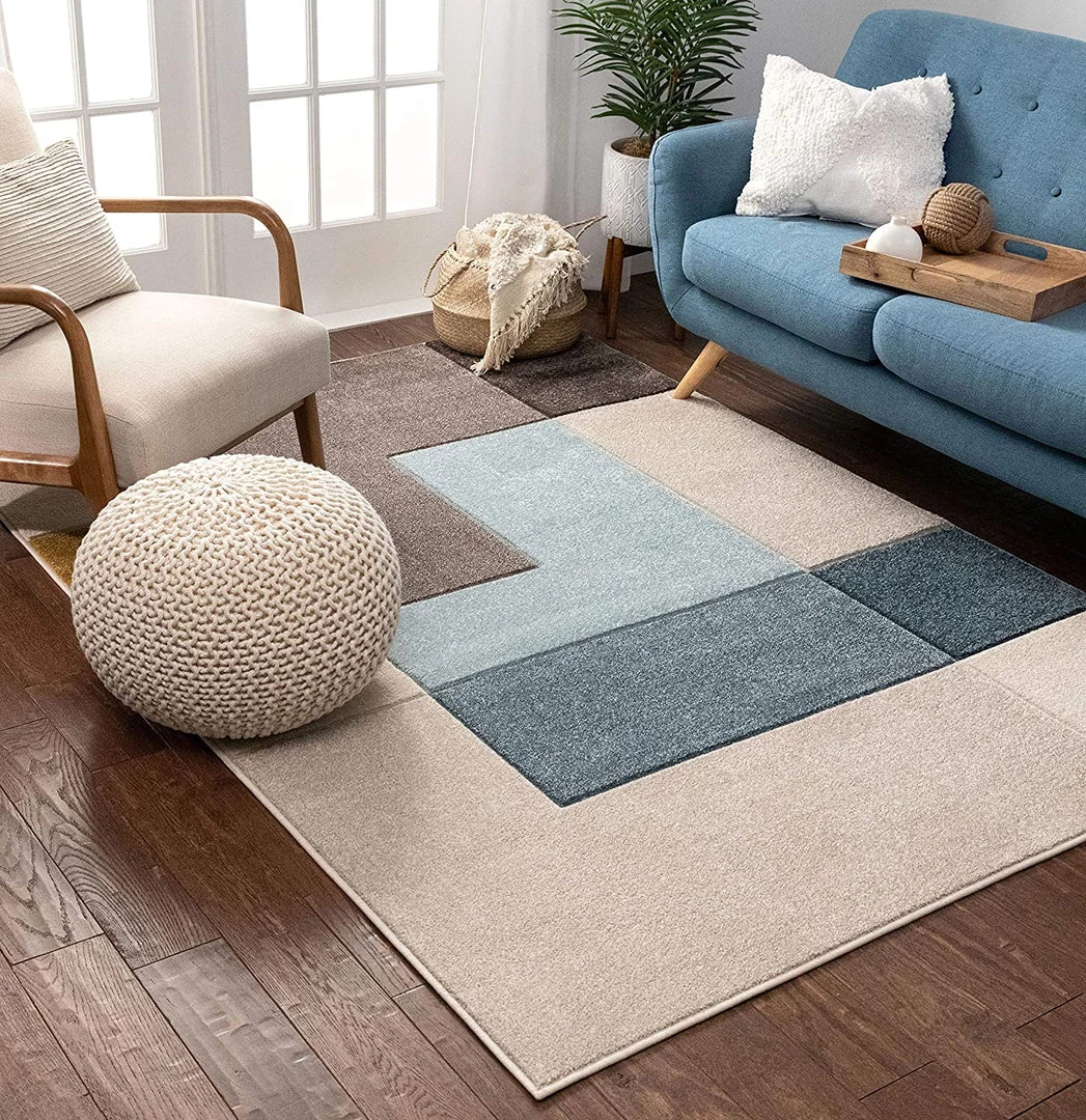 Constance All Area Rugs And Runners Modern Geometric Boxes Pattern Ivory Blue Multi Soft Area Rug
