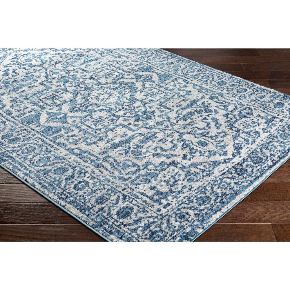 The lovely collection features a Persian inspired medallion pattern in a beautiful blend of sky blue, navy, light Grey, and white. Gorgeous and soft, this rug features a comfortable pile with minimal shedding. Great for high-traffic areas. Machine made in Turkey with 100% polypropylene. Spot or professionally clean only. Rug pad recommended.