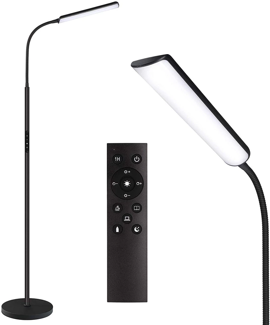 - ADJUSTABLE COLORS & BRIGHTNESS This standing lamp customize your experience by choosing Lightness from 10%-100% brightness and stepless color temperature settings ranging from 3000K-6000K, and also has 5 customized model with remote control. One hour timing setting function make you and your baby feel safe and fall in sleep easily.