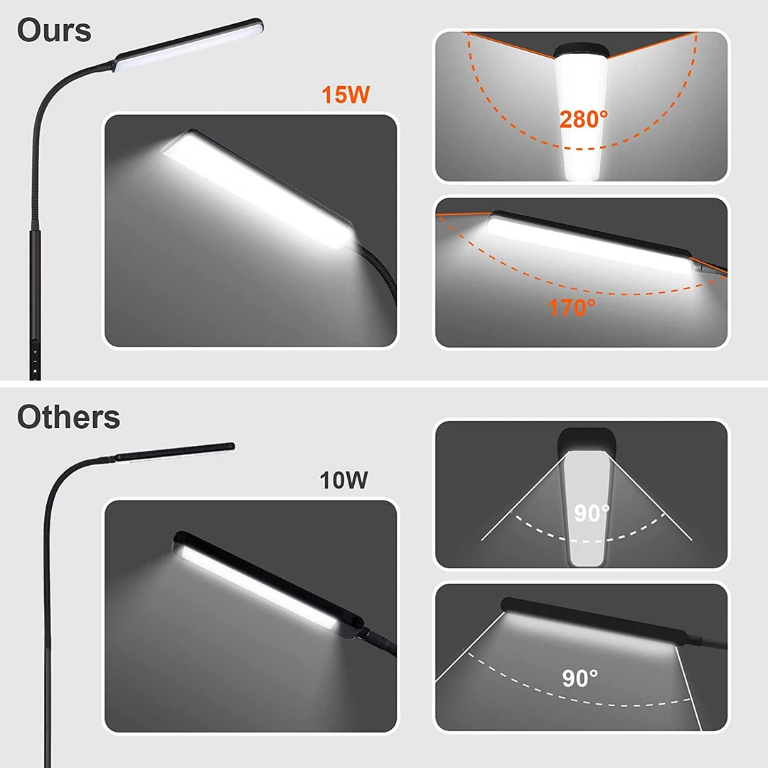 - SUPER BRIGHT LIGHTING Dimunt floor lamp build-in 112 pcs high brightness LEDs, and with arcuated lights design which can increase light range, up to 1000 Lumen is enough for reading in living room or bedroom. 15 watts LED tall lamp instead of halogen lamps burning 100 watts, with 50000 Hours long lifetime, you don’t need to replace any bulb, very convenient and saving energy.