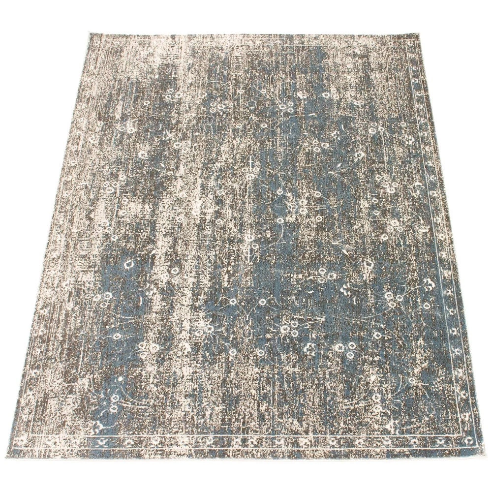 WRG All Area Rugs And Runners Blue Gray Ivory Floral Area Rug Non Slip/ No Skid – Low Pile