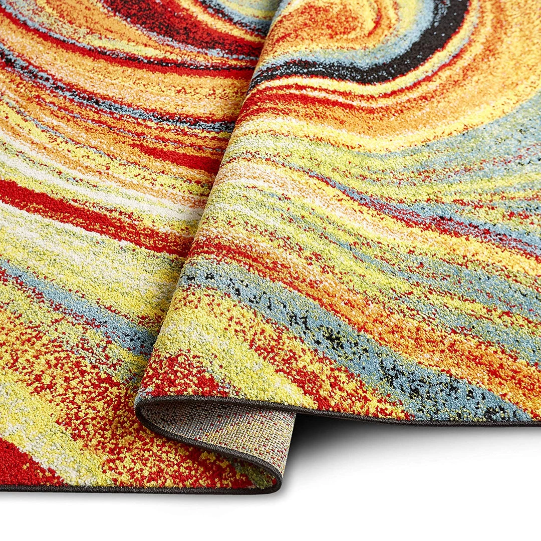 - FUN DESIGN WITH COLORFUL PALETTE: The abstract swirl design of the rug features bold hues of red, blue, green and yellow hues that will brighten up any room.