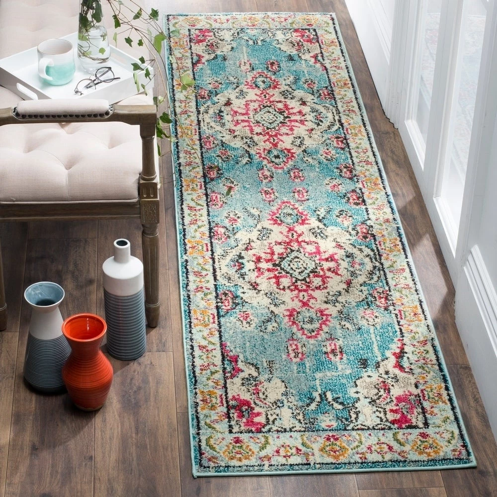 Free-spirited and vibrantly colored, this collection rugs bring Bohemian-chic flair to folkloric and formal Persian designs. A mix of high and low loop pile is power loomed of long-wearing polypropylene in classic textures and trendy erased-weave looks.