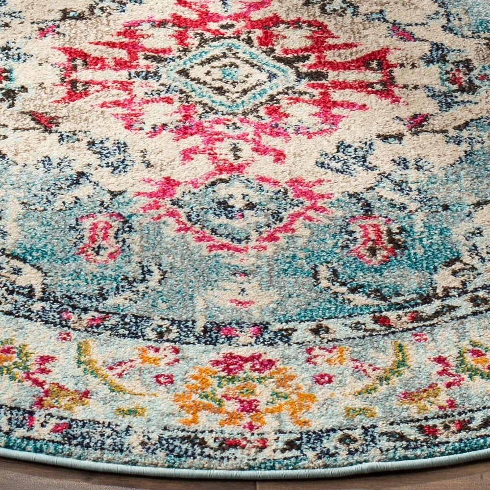 - Vintage distressed design with a stunning oversized medallion adds a fashion-forward flair to décor