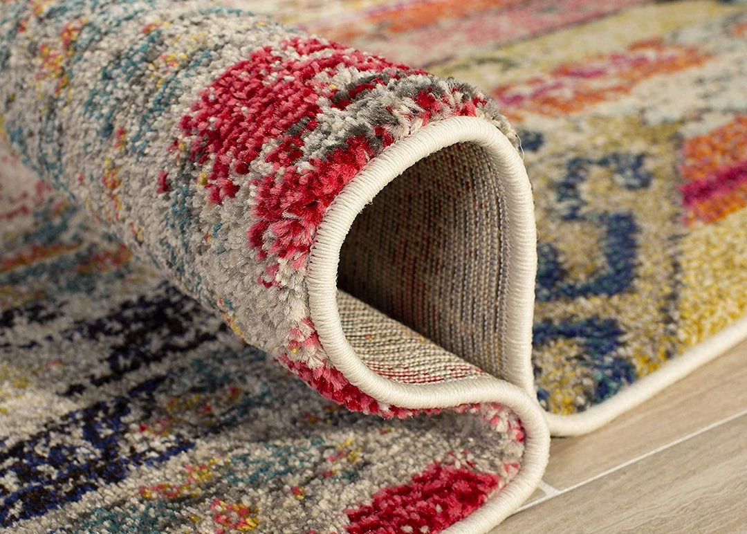 Free-spirited, eclectic, and boldly colored, this exquisite rug brings bohemian-chic flair to contemporary and transitional homes. Featuring a range of vibrant colors, these rugs are truly works of art. Deliberately distressed, this rug also brings a touch of vintage charm to any room. A refined power-loomed construction with enhanced polypropylene fibers ensures a virtually non-shedding rug for easy-care, especially in homes with pets, children, and high-traffic.