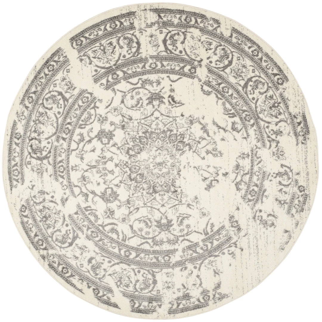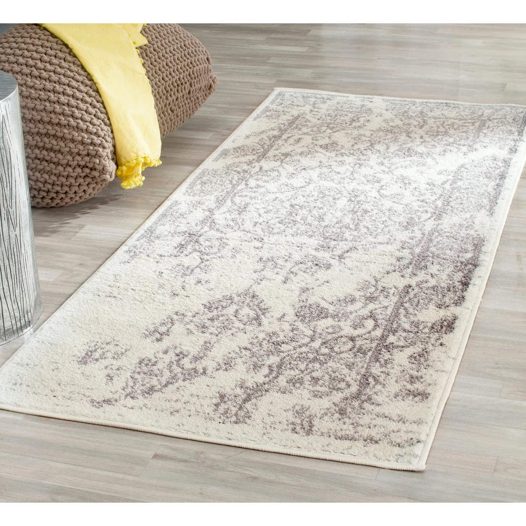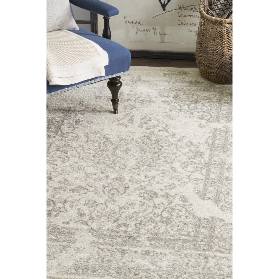 Featuring a stylish vintage aesthetic, this rug makes a striking fashion statement in any room. Its ivory and silver color combination provides the perfect neutral color palette to elegantly adorn a modern or Old World interior design motif.