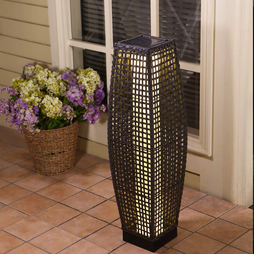 Grand Patio Store Grey Patio Outdoor Solar-Powered Woven Resin Wicker Lantern Floor Lamp Lamps