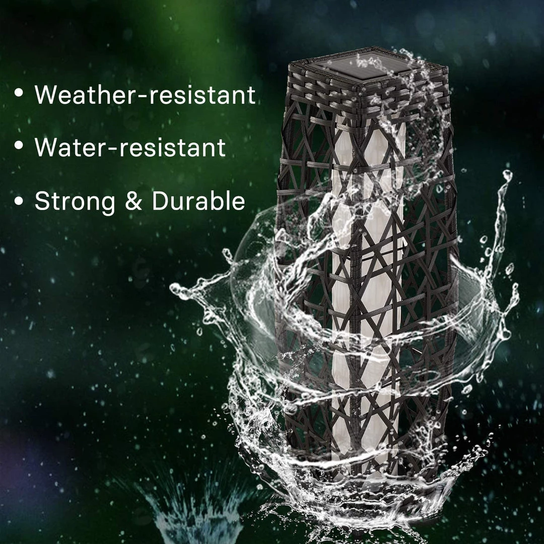 - WEATHER RESISTANT: Waterproof solar panel case is made of durable ABS plastic. The frame is powder-coated steel wrapped with resin wicker.