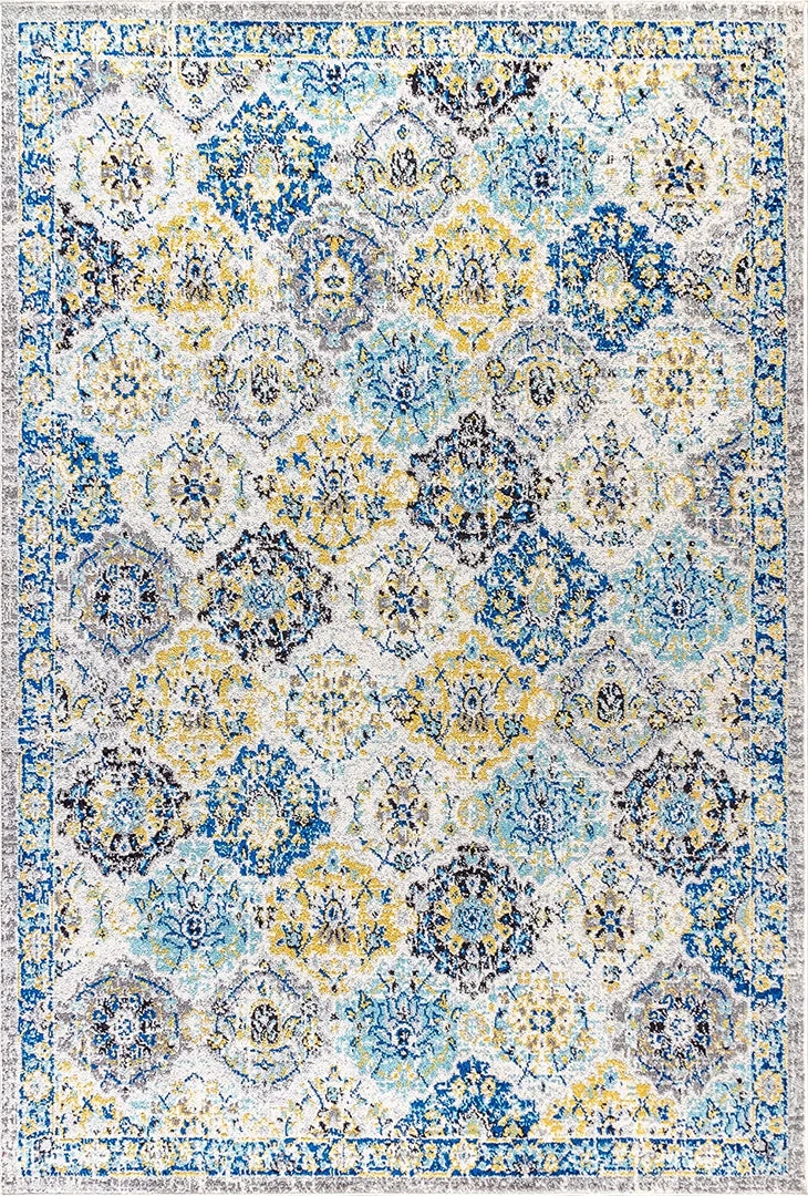 JONATHAN Modern Persian Boho Vintage Trellis Blue/Multi Soft Area Rug,