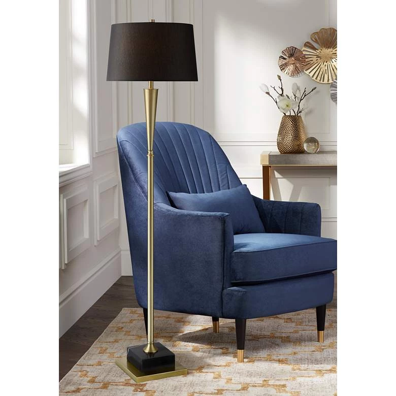 Lamp Plus Lamps Possini Euro Wayne Antique Brass Metal And Black Marble Floor Lamp