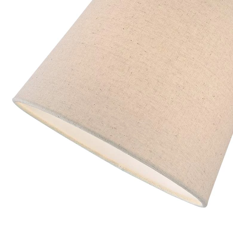 - Tapered cotton blend drum shades. Dark bronze finish base and pole, metal construction.