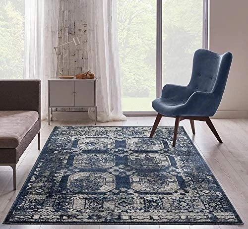 WRG All Area Rugs And Runners Blue Gray Ivory Floral Area Rug Non Slip/ No Skid – Low Pile