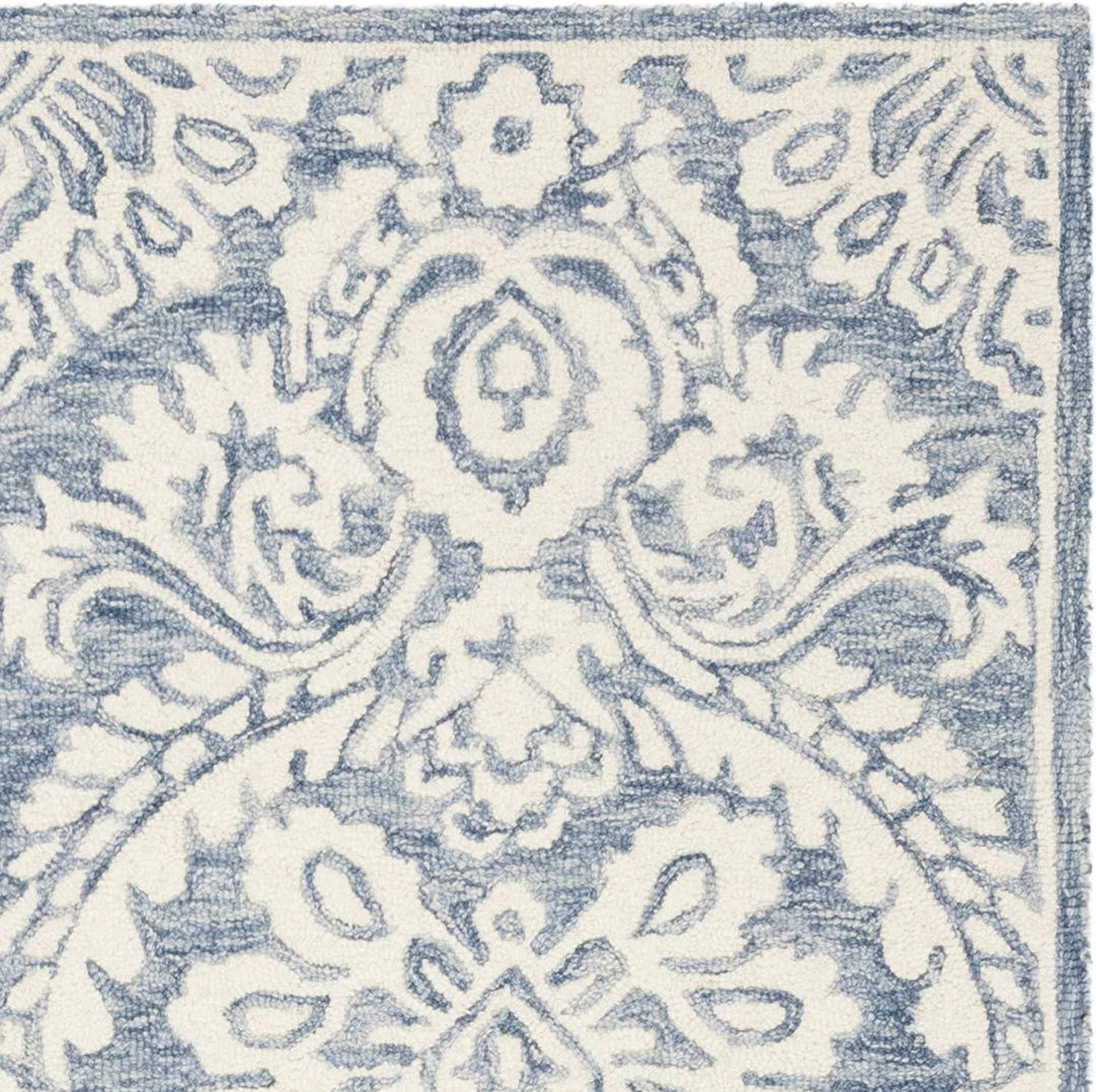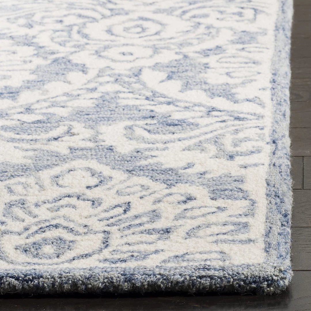 Modern Rugs And Decor All Area Rugs And Runners Damask Handmade Premium Wool Area Rug, Blue / Ivory