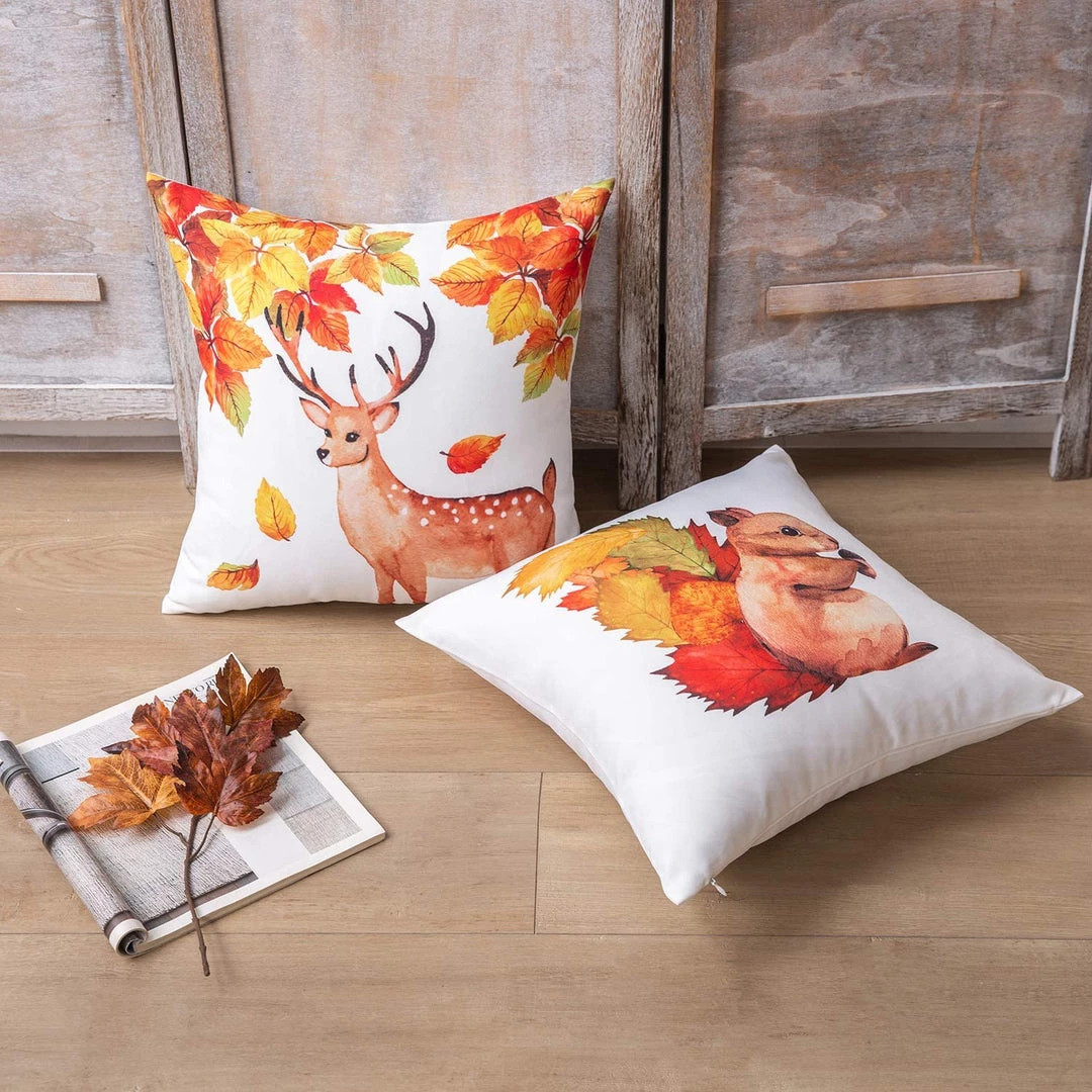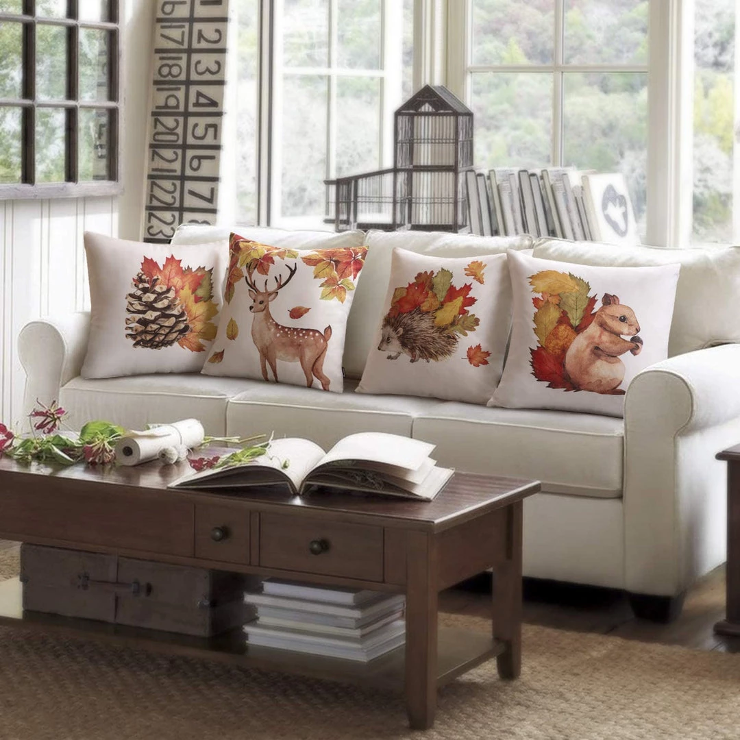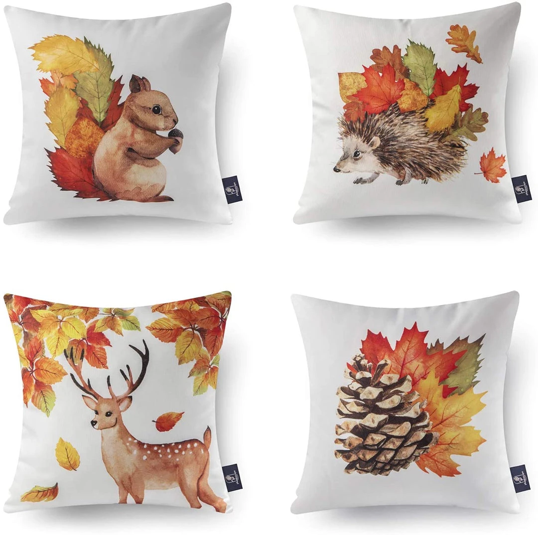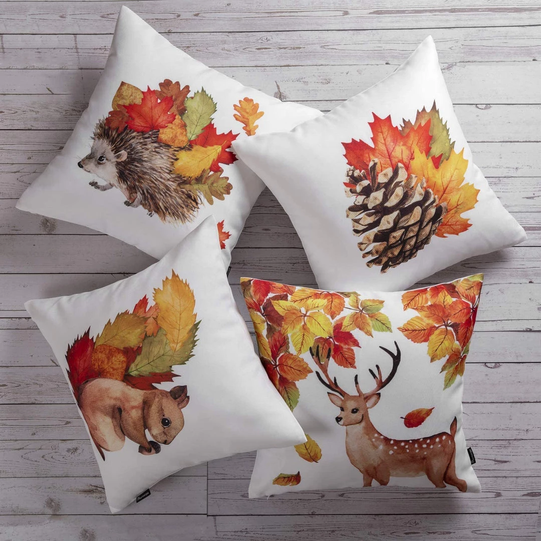 Modern Rugs And Decor Fall Throw Pillow Cover Autumn Harvest Animals And Maple Leaves – Set Of 4 Animal Print Rugs