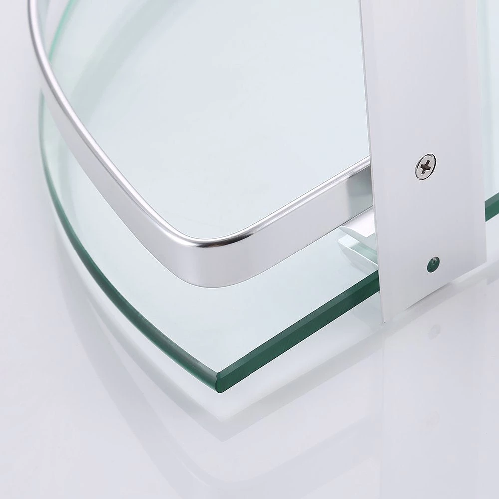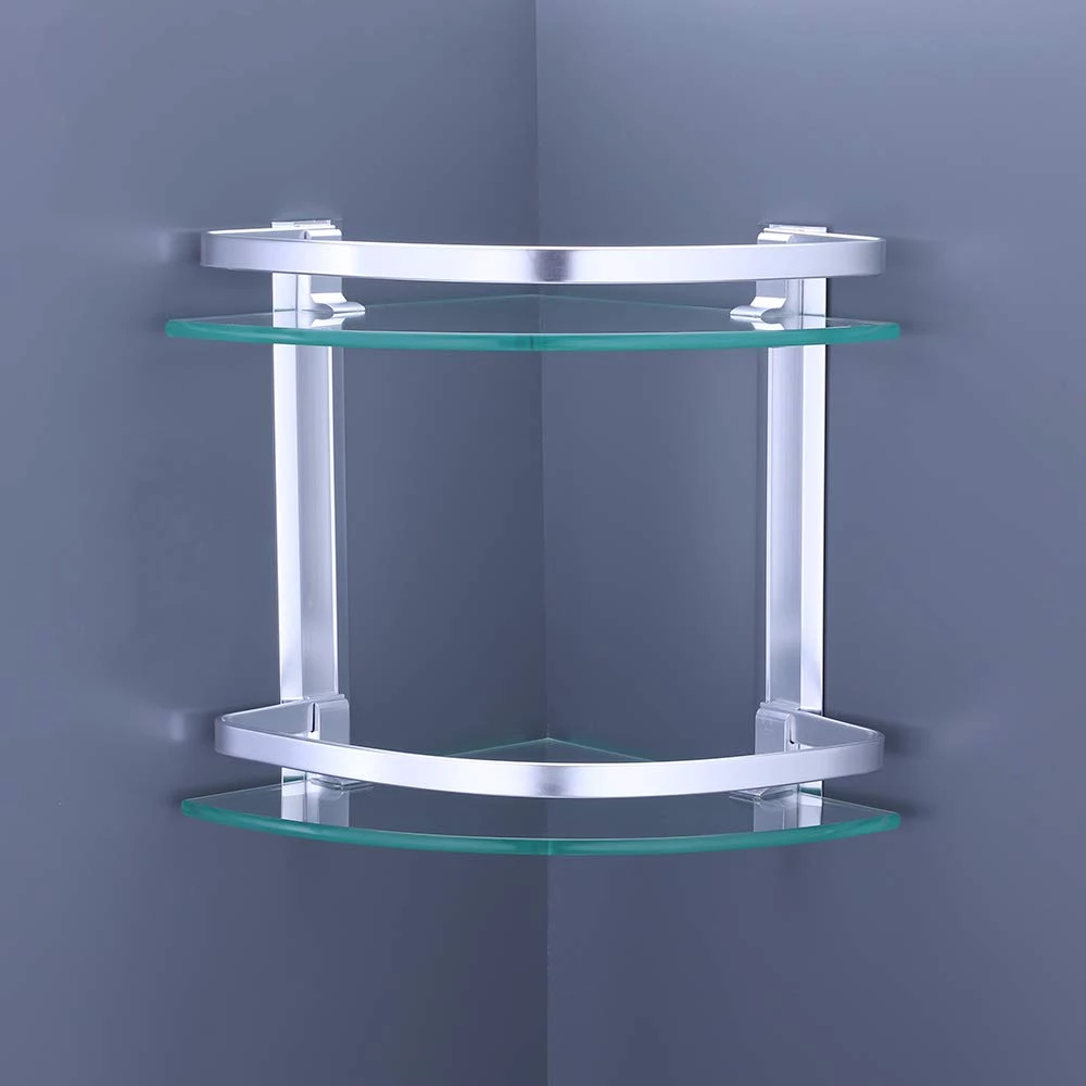Modern Rugs And Decor Furniture Heavy Duty Wall Mounted Corner Shelves Aluminum Tempered Glass Storage 2-Tiers