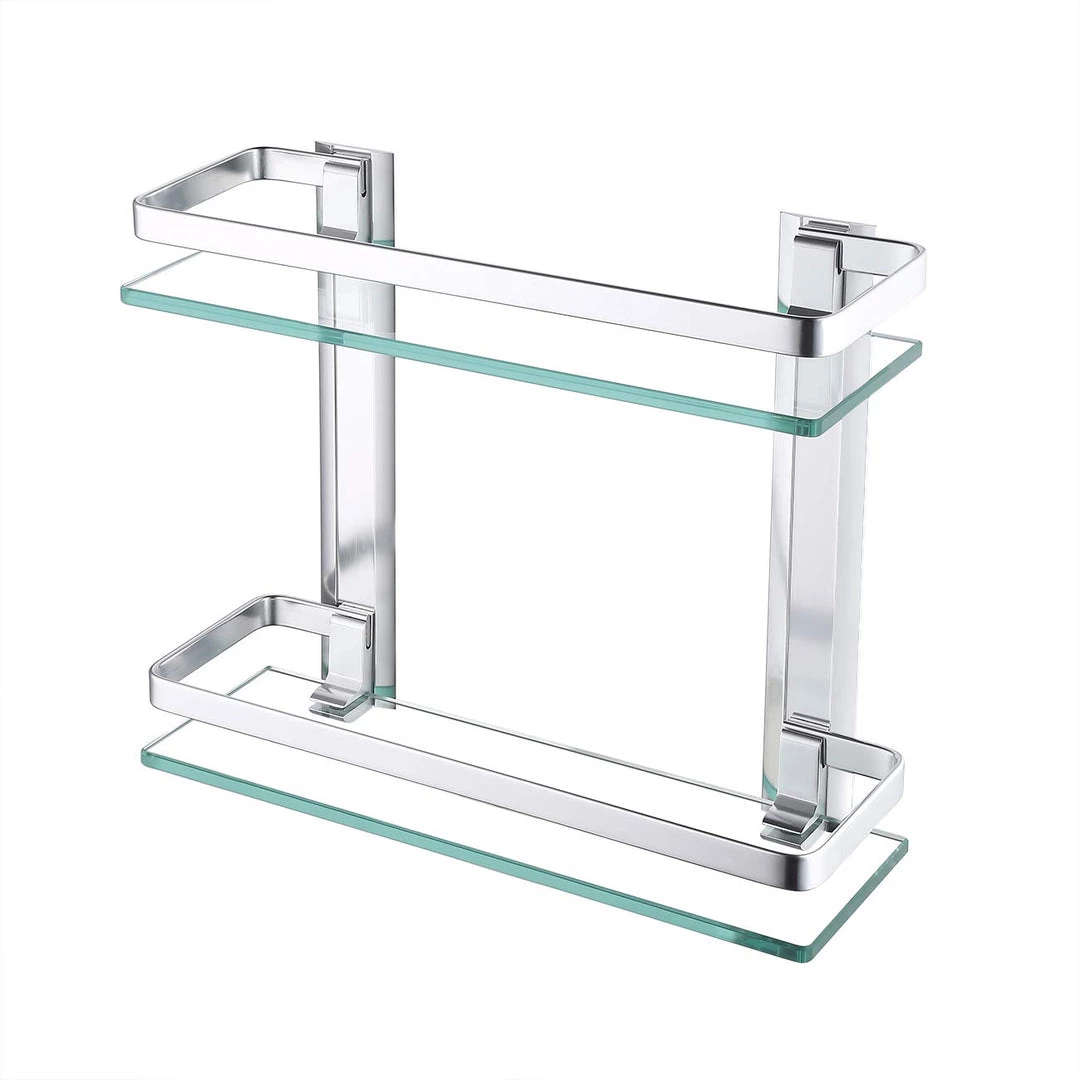 Modern Rugs And Decor Heavy Duty Rectangular Wall Mounted Corner Shelves Aluminum Tempered Glass Storage 2-Tiers