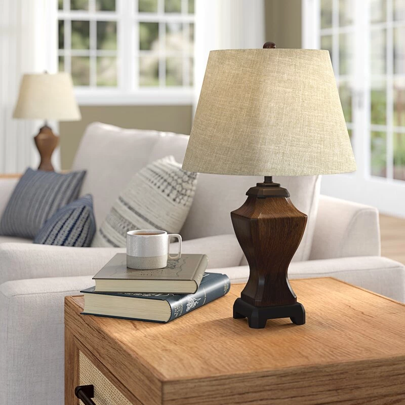 - Premium quality table lamp set (2pcs), nice wood-looking base.