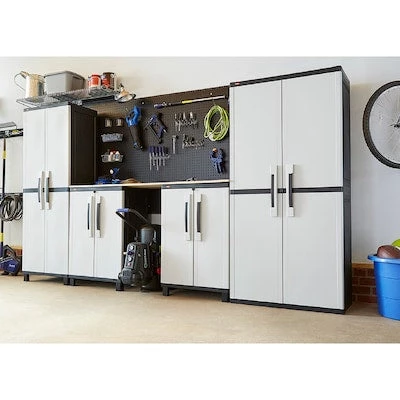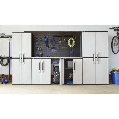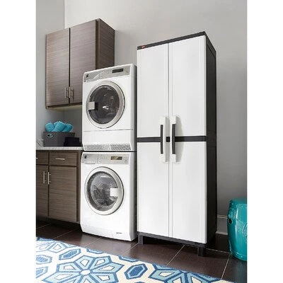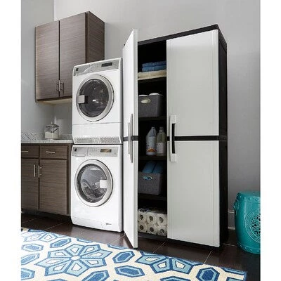 The space utility cabinet is perfect for those areas in and around the home that lack storage space. Even if your garage has shelves installed, you may need a more secure place to keep certain tools and other items. The space utility cabinet has sturdy doors, and a padlock can even be used to lock them closed. Thanks to its freestanding design, it can be placed just about anywhere.