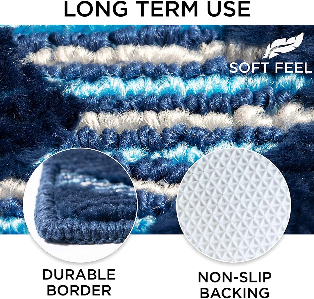WRG All Area Rugs And Runners Blue Gray Ivory Floral Area Rug Non Slip/ No Skid – Low Pile