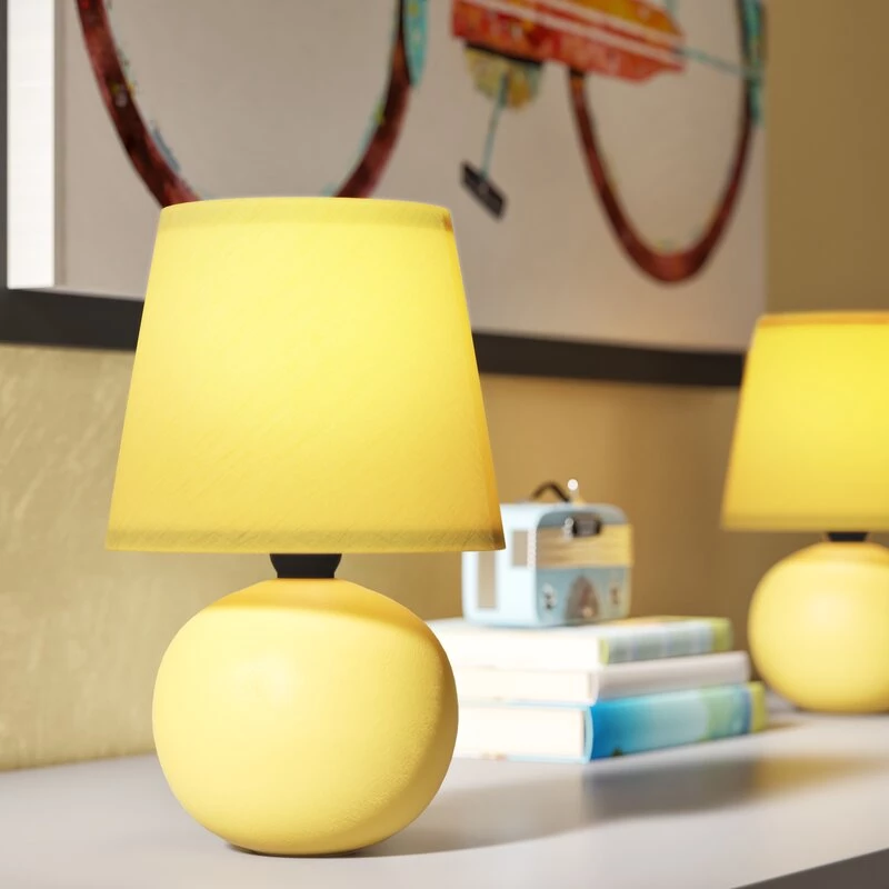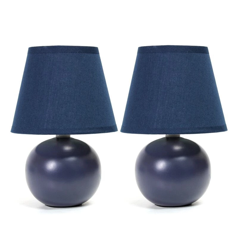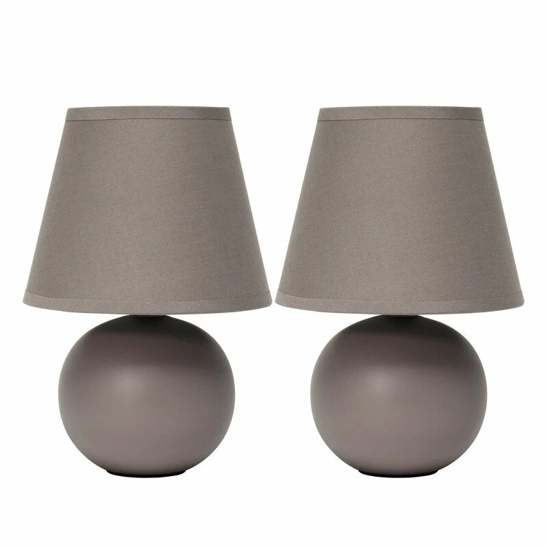 - 2 x Mini globe shaped ceramic bases, 2 x Matching fabric shades