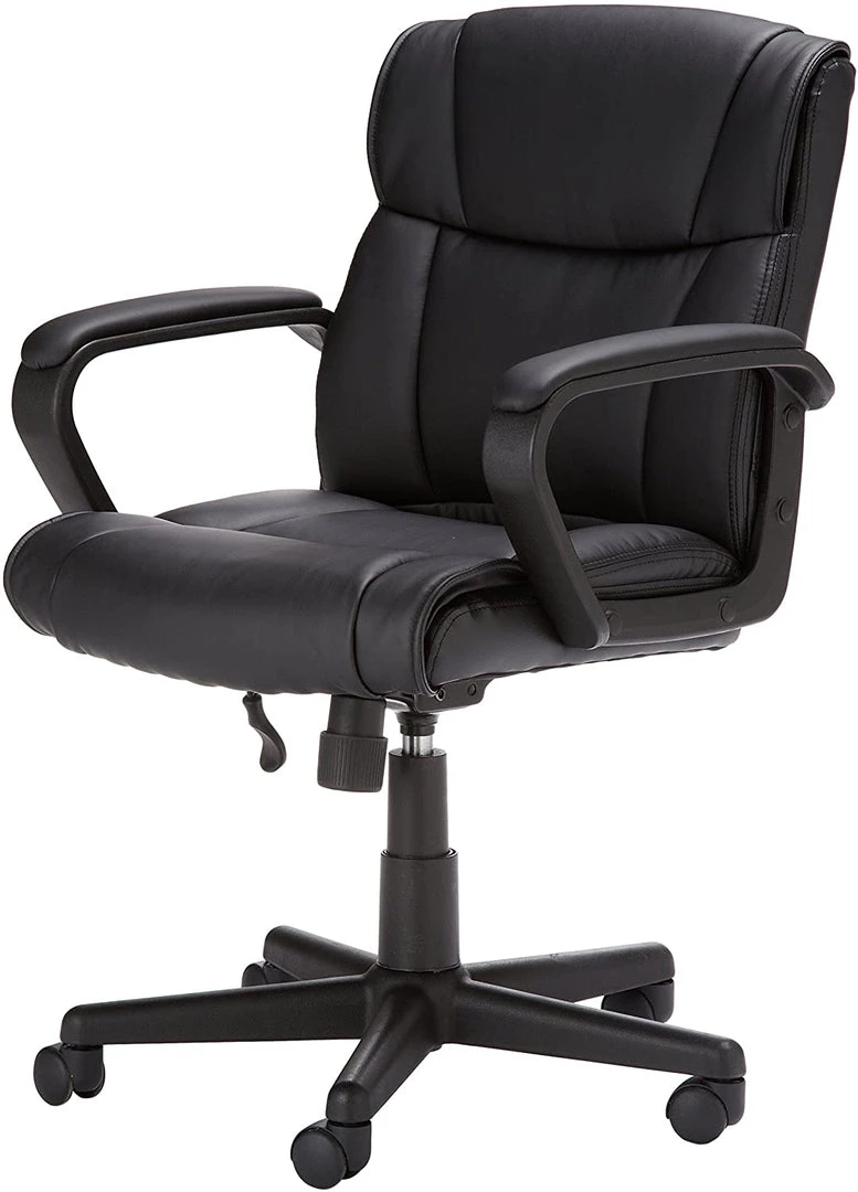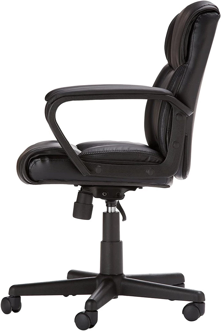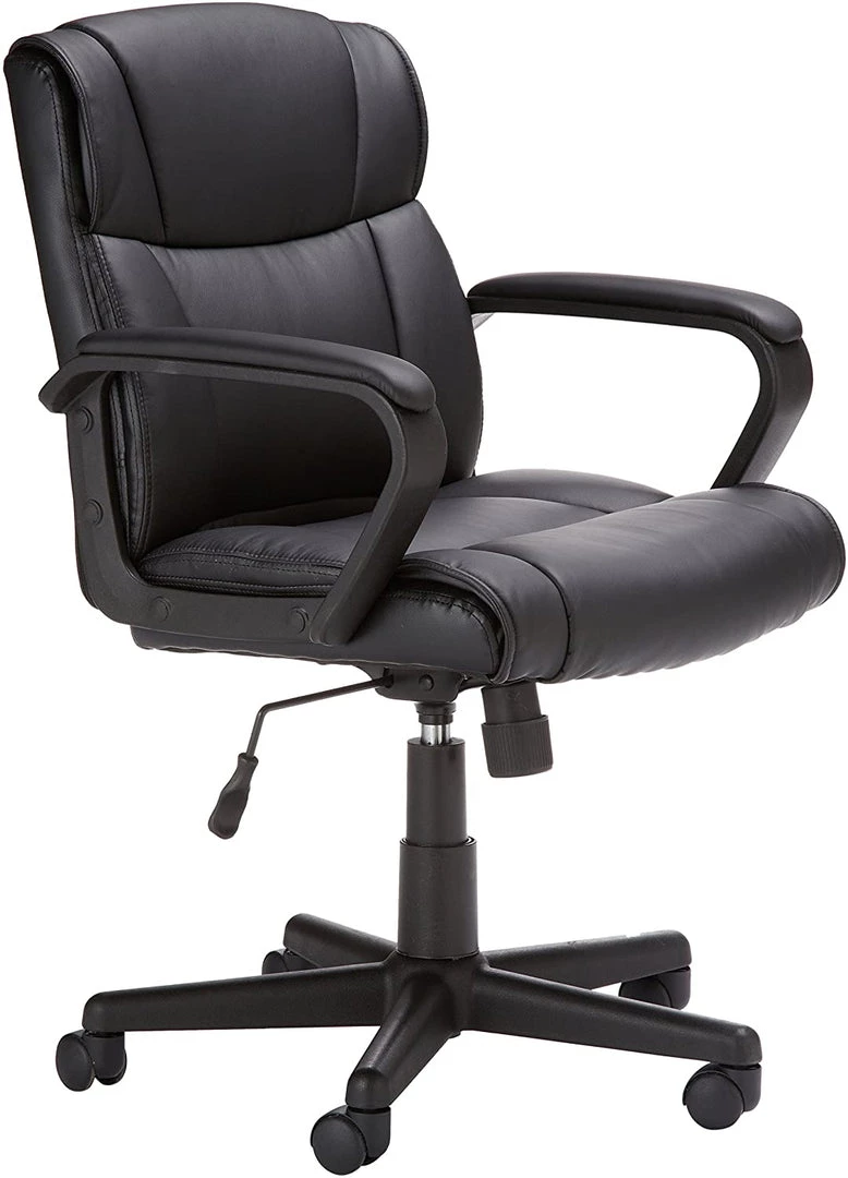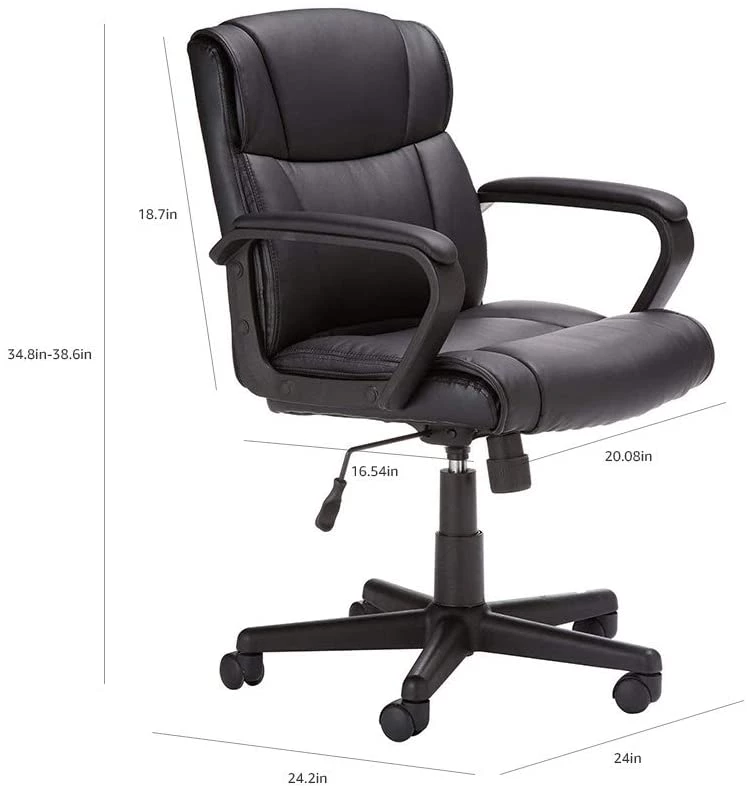 - Ergonomic, swivel office chair with durable polyurethane bonded (faux) leather upholstery on seat and back