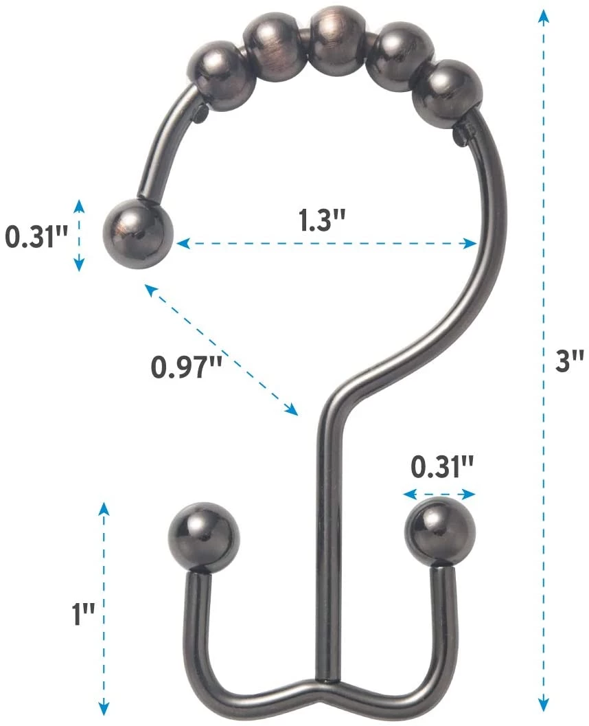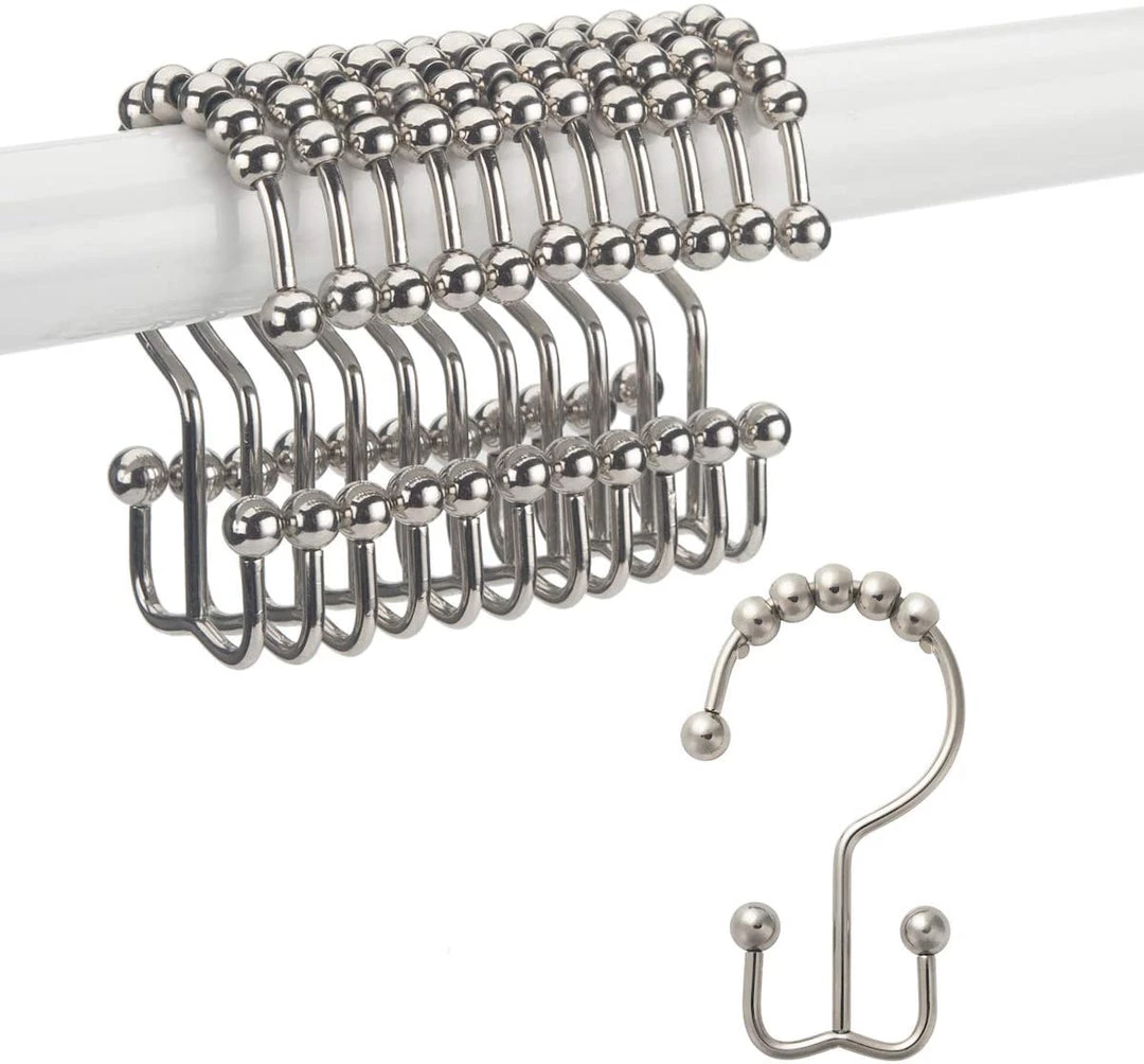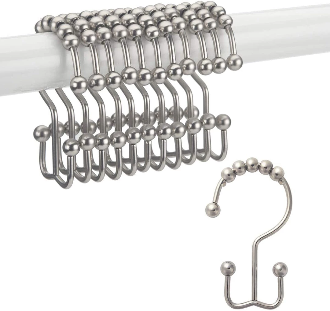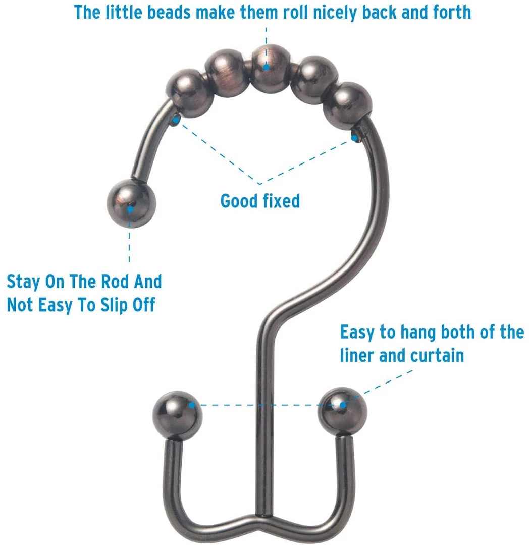 - Smooth gliding -Engineered spherical roller balls of shower curtain hooks can glide smoothly and fast across shower rod.