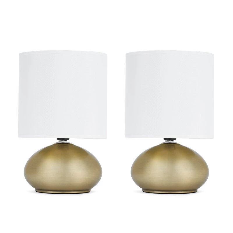 This set of 2 accent lamps features a sturdy metal body with antique brass finish and white faux silk shades. The convenient touch switch allows you to easily turn on the lights, making them the perfect addition to your living room, family room, bedroom, dorm room, home office, craft room, kitchen or any open concept living space. Great for apartment living or DIY home remodeling projects and suits a variety of styles including modern, transitional, contemporary, industrial, global, farmhouse, rustic and traditional decor.