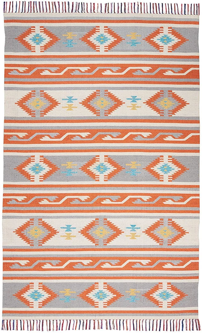 - Tribal influences, warm sunny colors and the casual comfort of a flat weave area rug define the appeal of our Baja Collection
