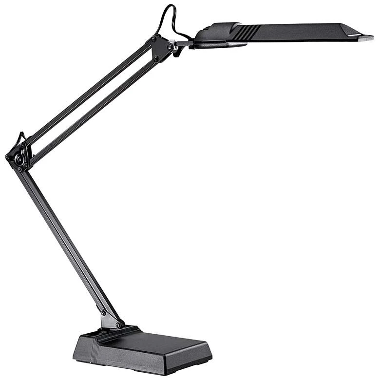 Offering substantial presence, this extended-reach desk lamp is the perfect complement to your home office. The lamp boasts a crisp black finish to accentuate any decor. An elongated lamp head directly lighting exactly where you need it. A six-foot long black power cord is included.
