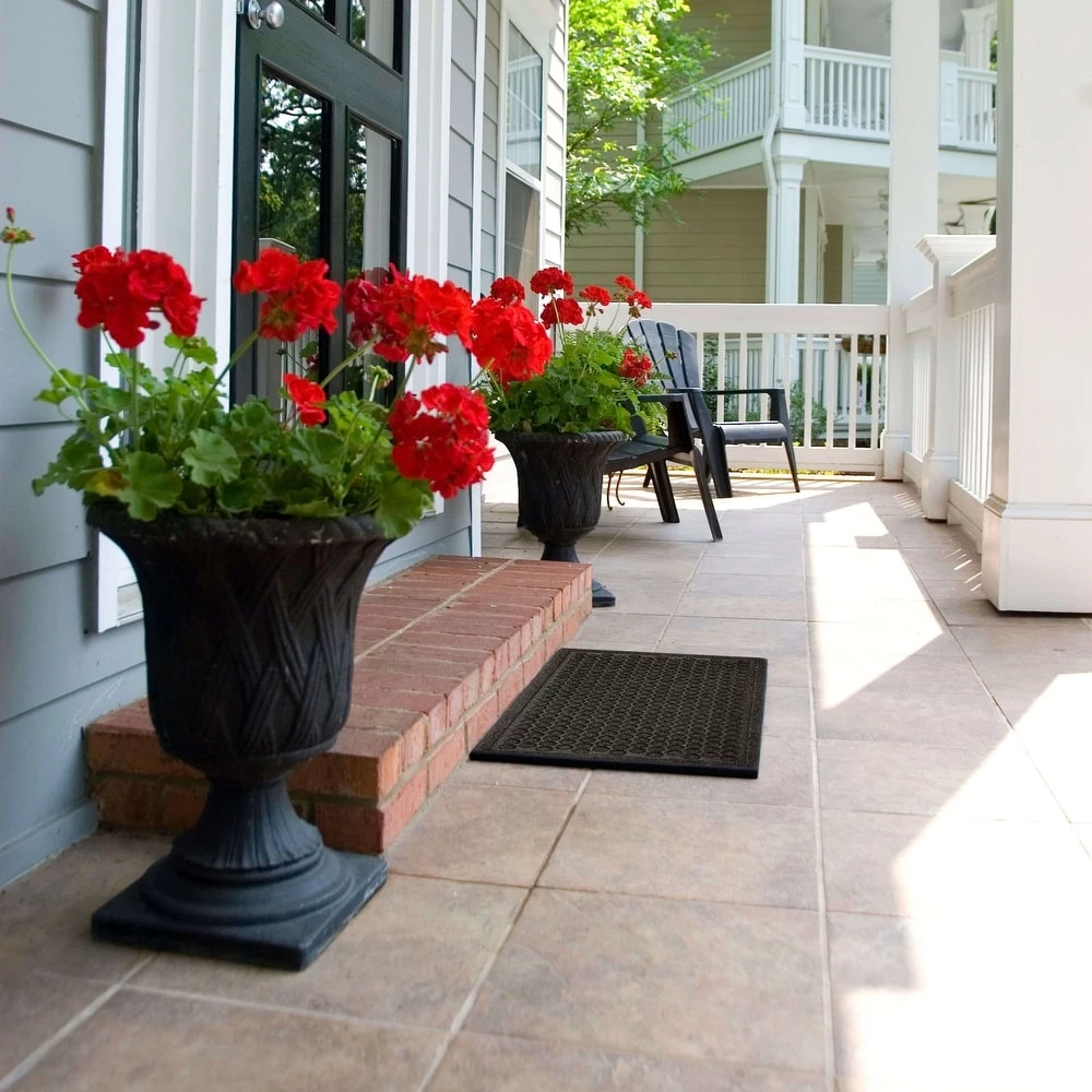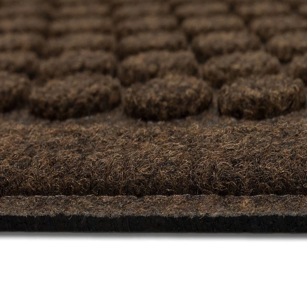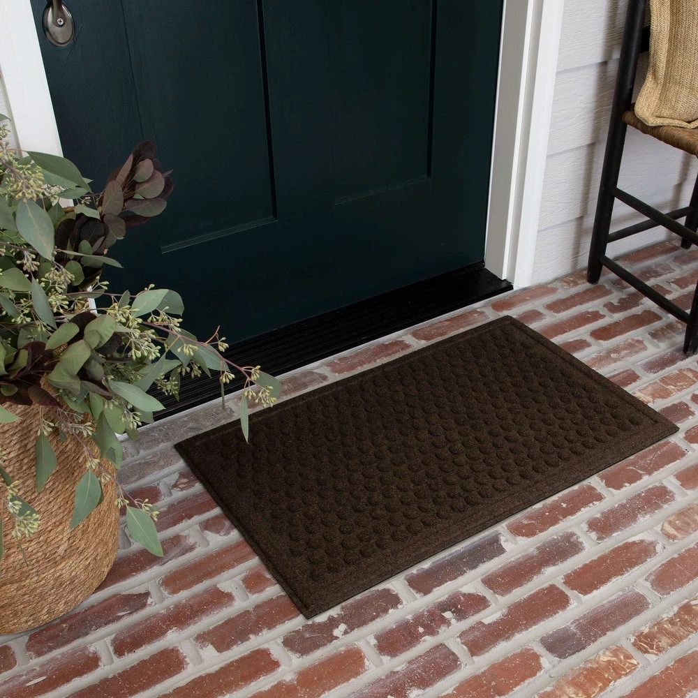 Fashion and function meet in the Mohawk Dot Impressions Door Mat. Rows of symmetrical circles add a pop of playful of style to this essential utility mat. The grid of raised circles that covers the top, creates a textured surface that helps remove dirt and debris from your shoes. Fabricated from durable materials for both indoor and outdoor use, this door mat is sturdy and long-lasting.