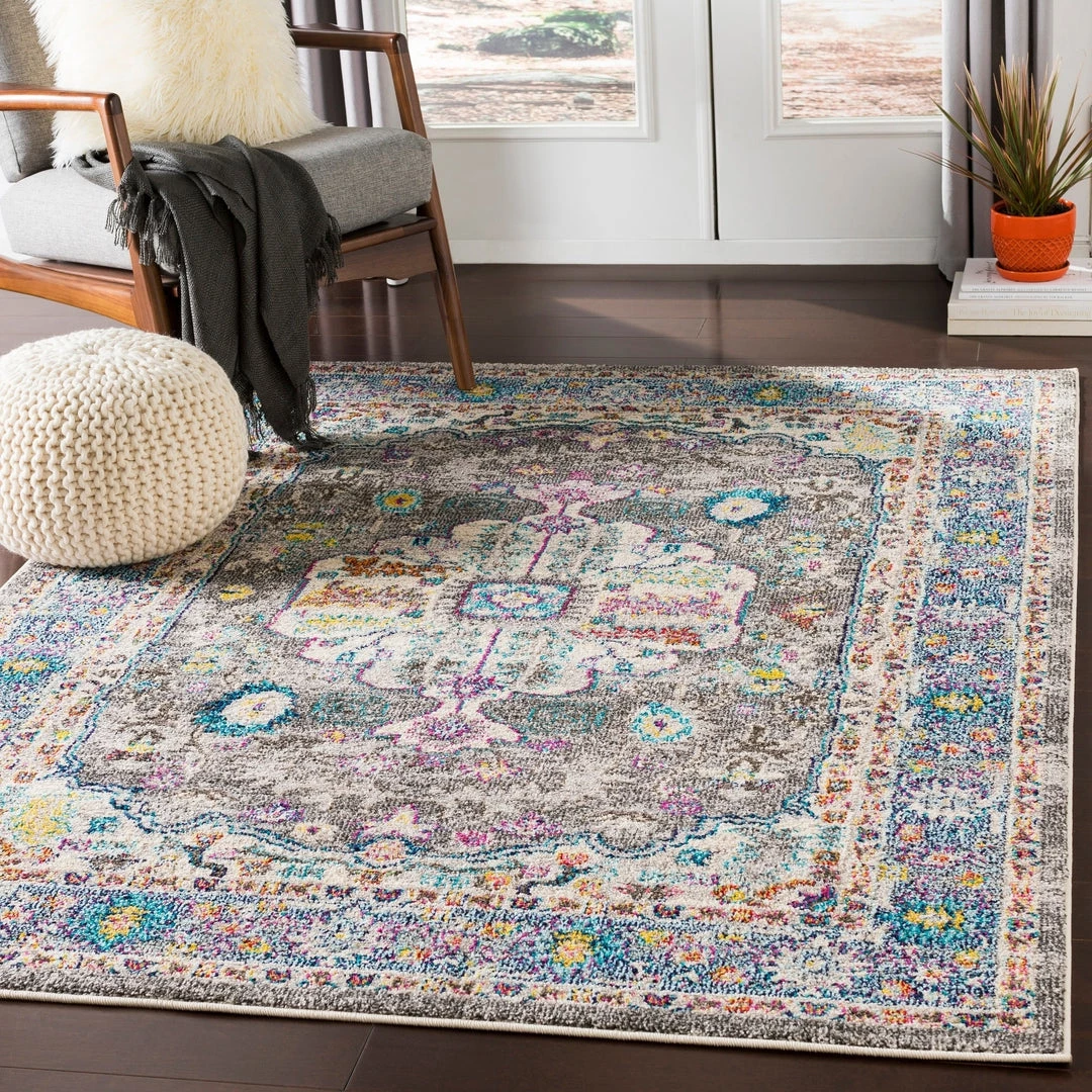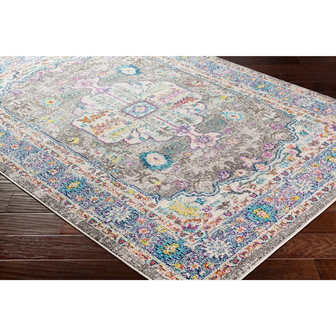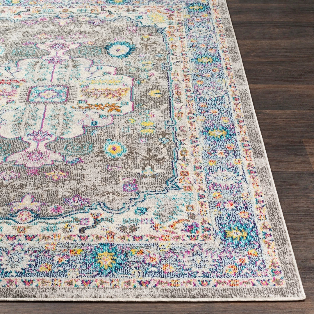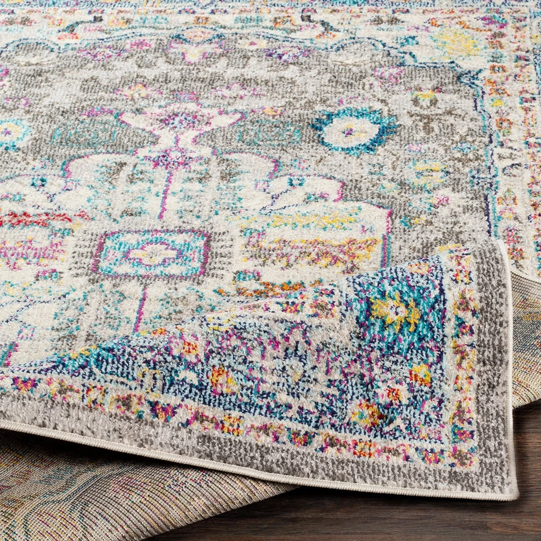 This vibrant collection features a distressed Persian pattern in a beautiful blend of navy, pale blue, teal, charcoal, yellow, orange, coral, fuchsia, camel, red, beige, and white. Gorgeous and soft, this rug features a comfortable pile with minimal shedding. Great for high-traffic areas. Provides a burst of color at an excellent price! Machine made in Turkey with 100% polypropylene. Spot or professionally clean only. Rug pad recommended.