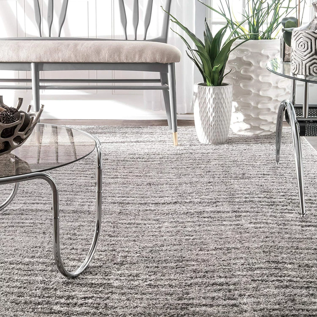Made for plush durability from a polypropylene blend, this stylish area rug is a beautiful and lasting addition to any home. A charming wave pattern rendered in shades of grey allows the rug to lend movement to any decor. The rug is latex free and easy to clean for your convenience..
