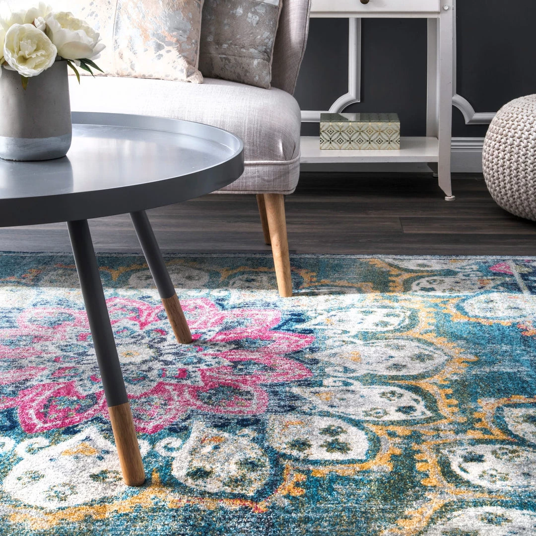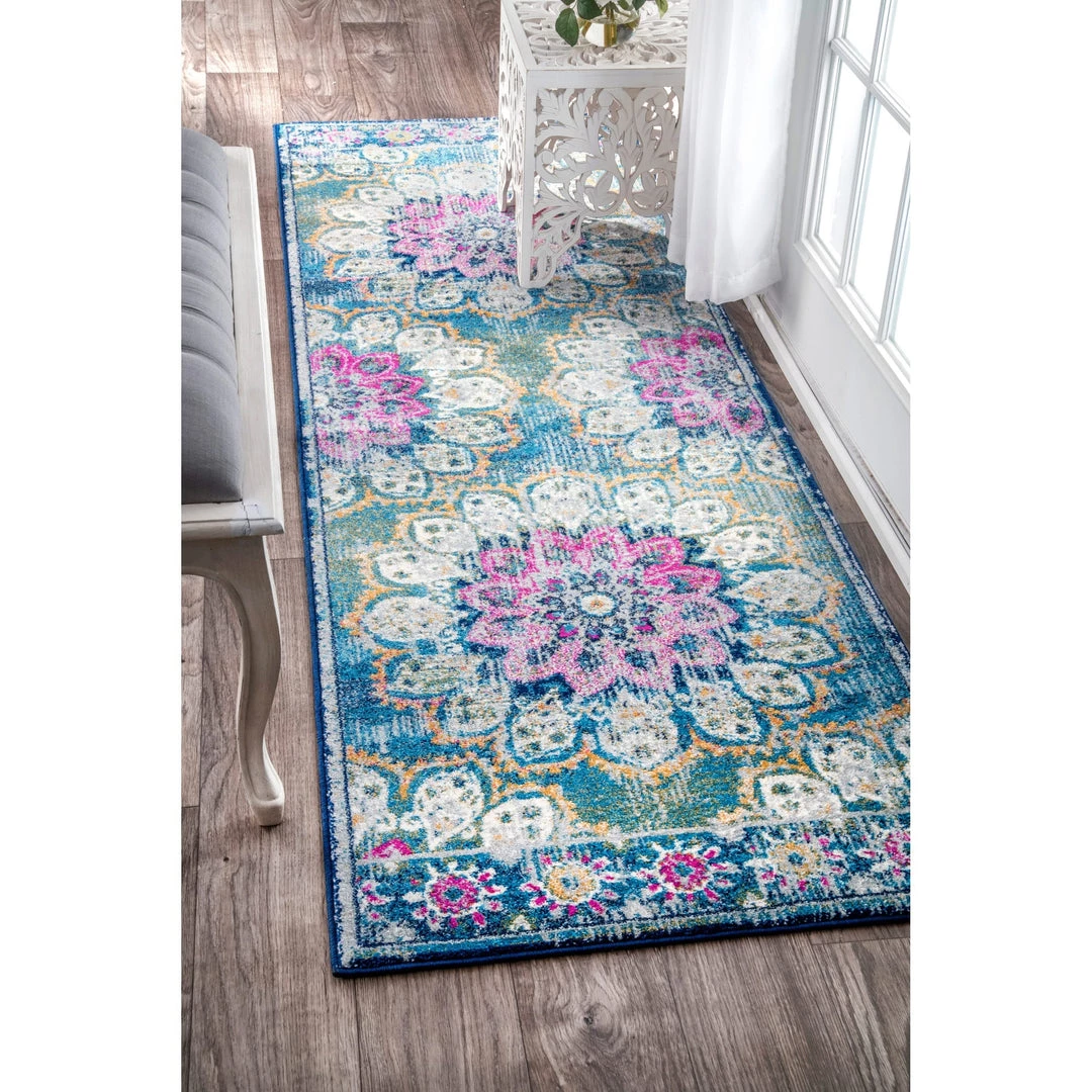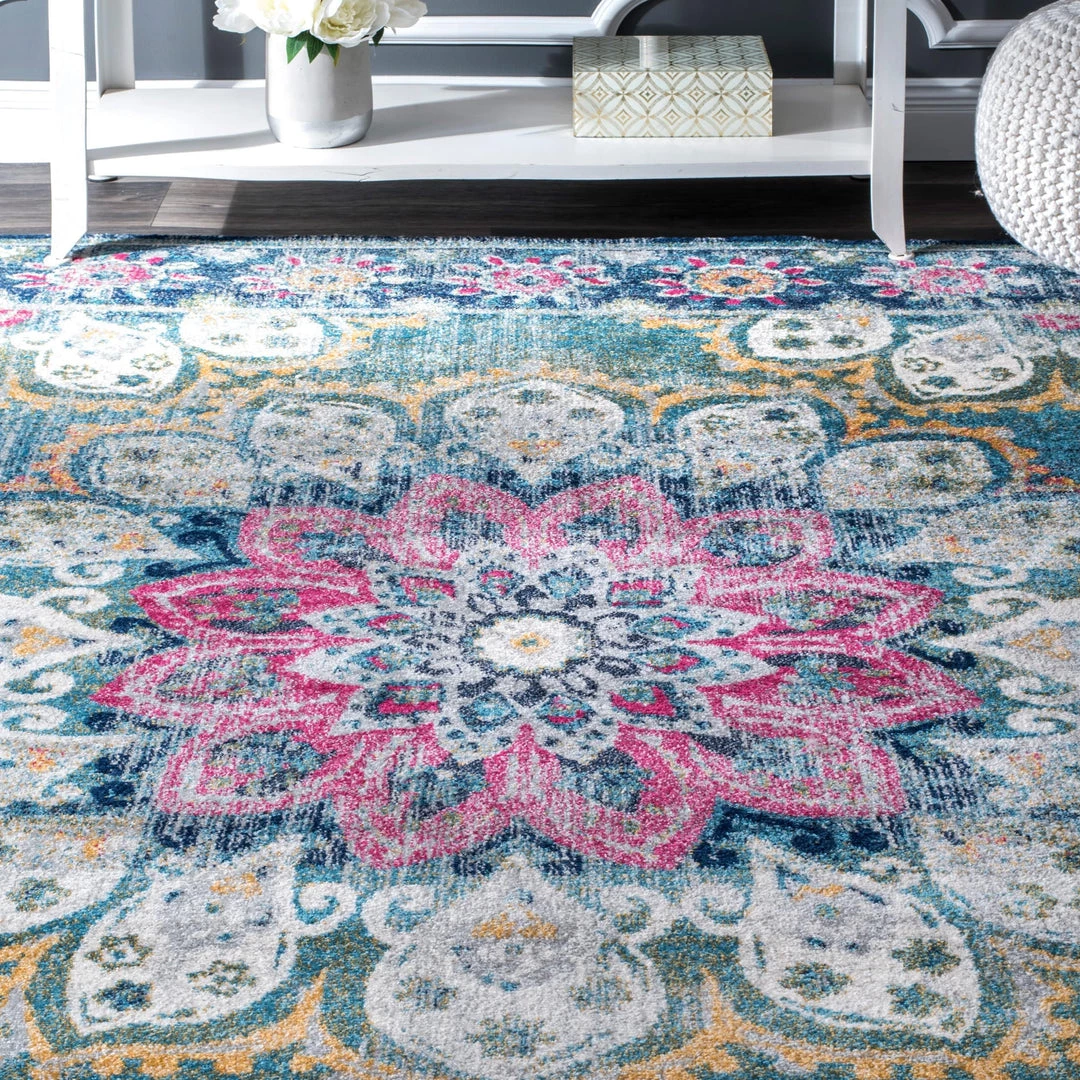 NL Mandala Floral Vintage Turquoise Blue Pink Area Rugs All Area Rugs And Runners