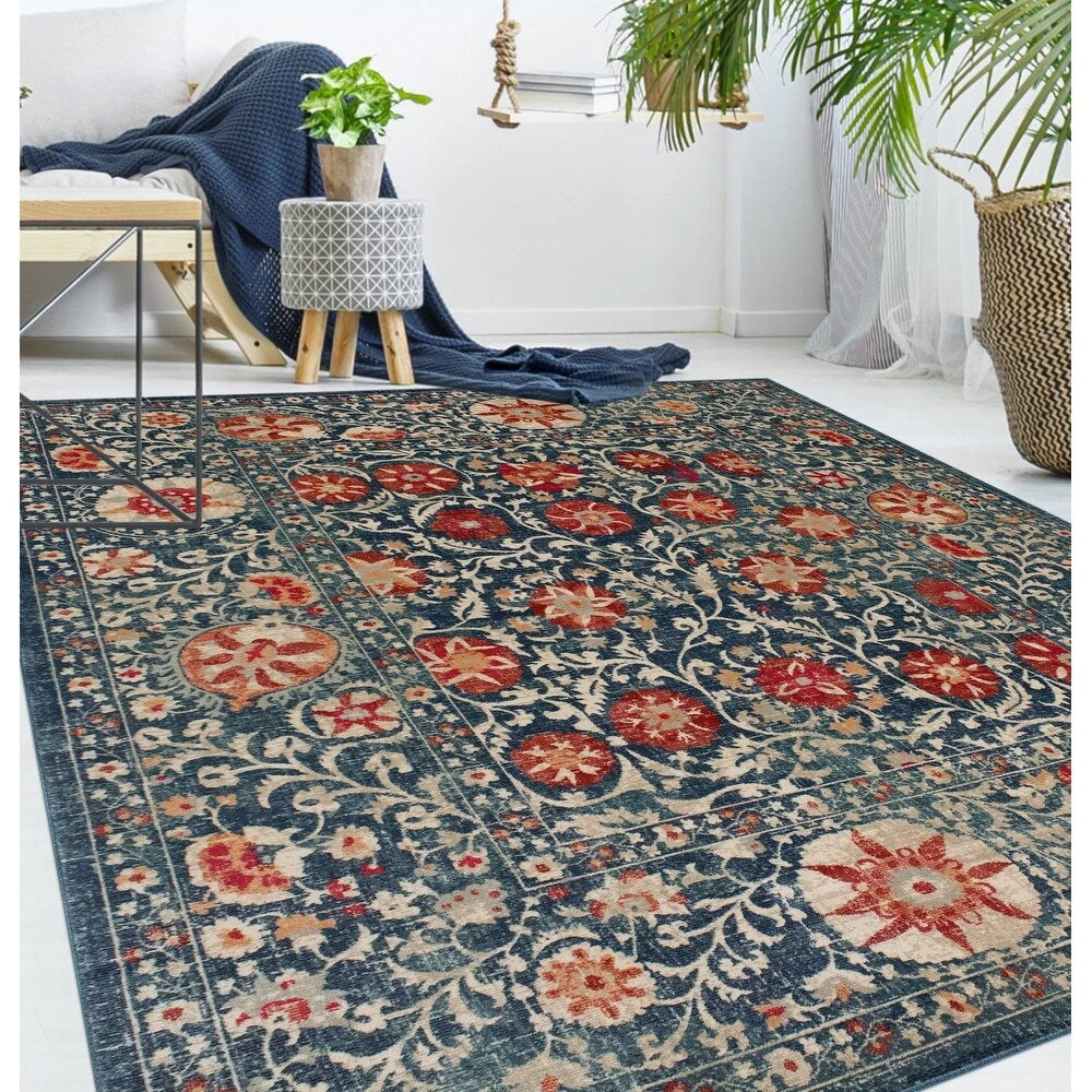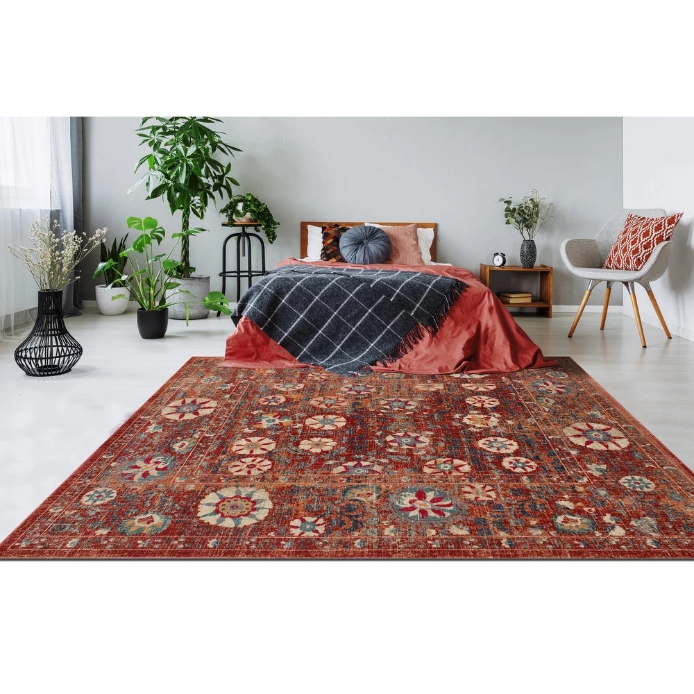 WRG All Area Rugs And Runners Floral Red Gray Black Area Rug