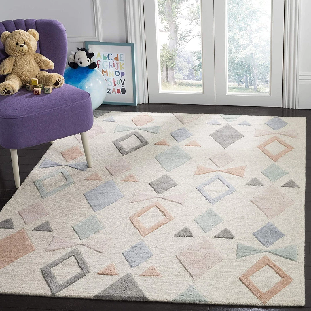 Safavieh All Area Rugs And Runners Kids Collection Handmade Geometric Wool Area Rug Ivory / Multi