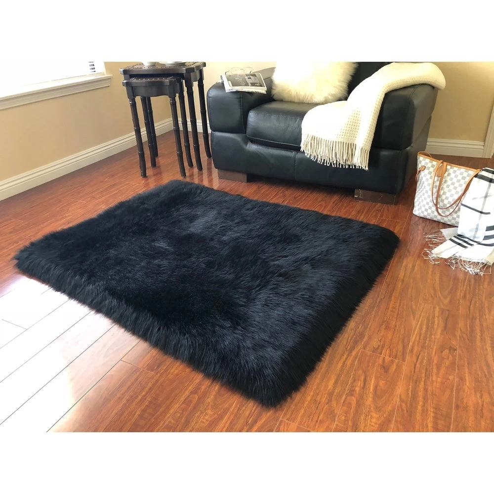 - 3′ thick faux sheepskin pile is soft and luxurious