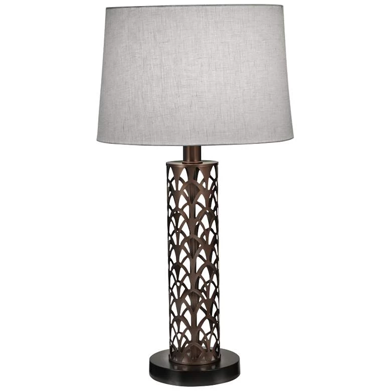 Artistic and modern, this bronze metal table lamp features laser cut arch designs.
